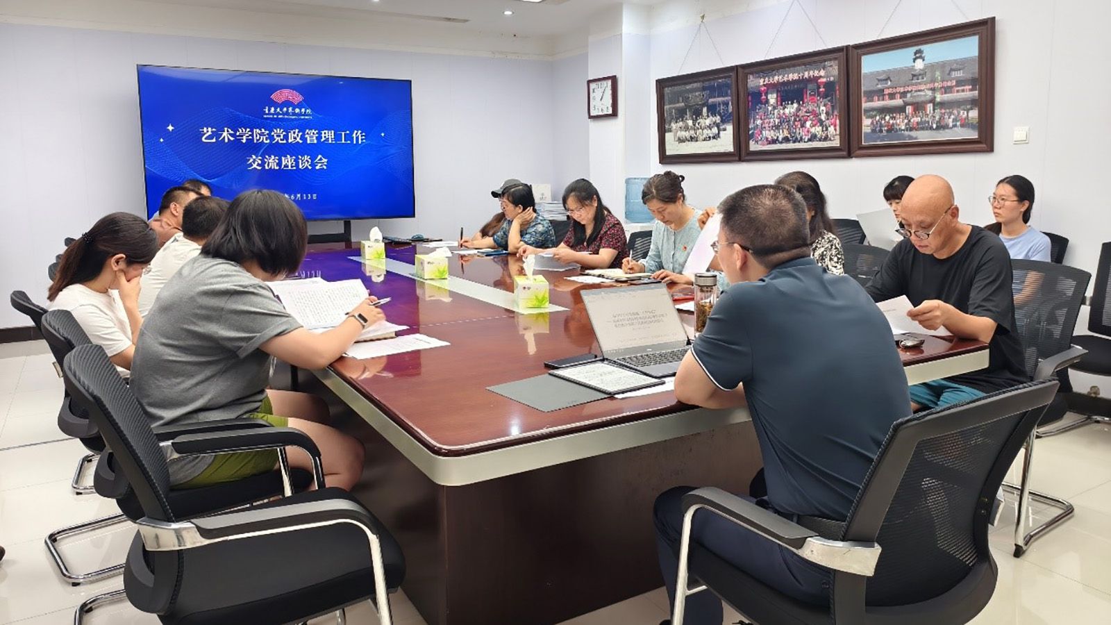 加强学院行政管理文化建设,提高管理服务人员综合能力,2024年6月13日,适逢2014年5月8日习近平总书记调研视察中央办公厅十周年之际,*污污漫 在学院办公楼417会议室召开了党政管理工作交流座谈会。学院党委书记蒋华林主持会议。党政办、学工办、图书馆、美育中心全体人员参加。与会人员集体学习了《办公厅工作要做到“五个坚持”——习近平同志在同中央办公厅各单位班子成员和干部职工代表座谈时的讲话》和2023年9月习近平总...