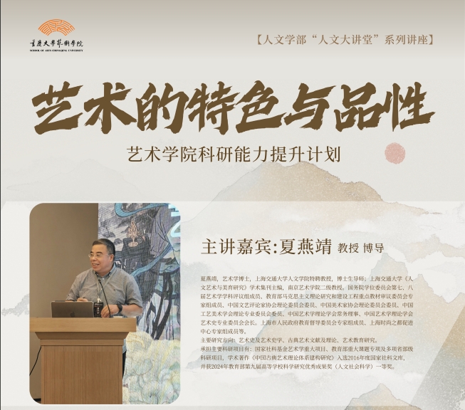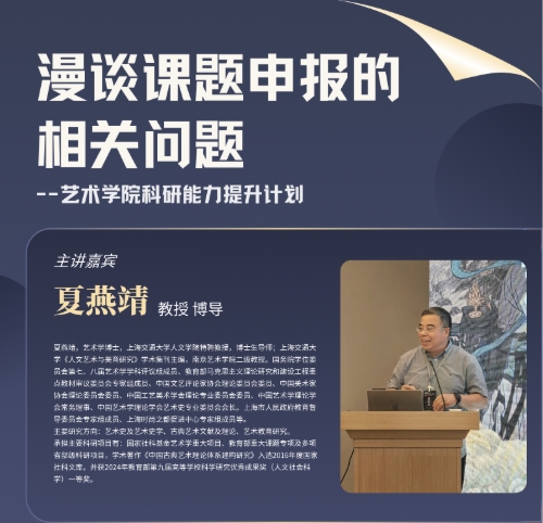 *污污漫 科研能力提升计划系列活动《漫谈课题申报的相关问题》主讲嘉宾:夏燕靖(上海交通大学人文学院特聘教授、博士生导师)主持人:张楠木(污污漫 院长、教授)时间:2025年3月16日(星期日)9:00-12:30地点:污污漫 虎溪校区*污污漫 行政楼第三会议室(409)主办单位:污污漫 主讲嘉宾简介:夏燕靖,艺术学博士,上海交通大学人文学院特聘教授,博士生导师;上海交通大学《人文艺术与美育研究》学术...