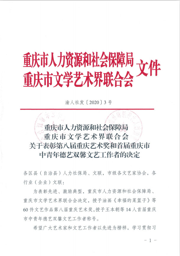 日前,为表彰先进、激励典型,重庆人力资源和社会保障局、重庆市文联联合评定并公布了第八届重庆艺术奖和首届重庆市中青年德艺双馨文艺工作者称号获奖名单,希望广大艺术家和文艺工作者以之为榜样,学习贯彻习近平总书记系列重要讲话精神,将习近平总书记的殷殷嘱托全面落实在重庆大地上,进一步坚定文化自信,坚持以人民为中心的创作导向,用心用情用力记录新时代、书写新时代、讴歌新时代,创作出更多无愧于时代、无愧于人民...