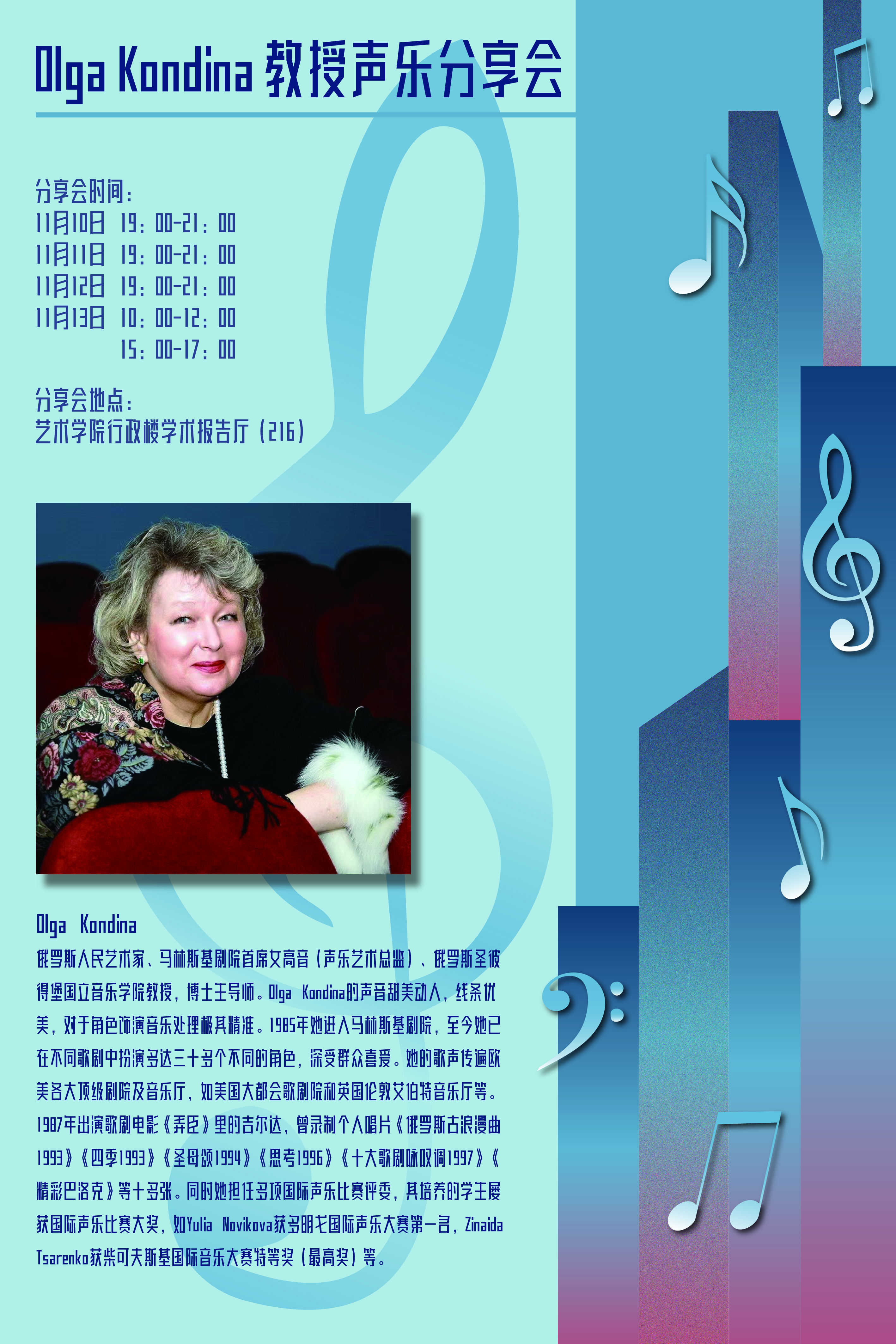 主讲嘉宾:Olga Kondina(俄罗斯人民艺术家,马林斯基剧院首席女高音,俄罗斯圣彼得堡国立音乐学院教授、博士生导师)主持人:喻思言(污污漫 音乐系副系主任 副教授)时间:11月10日 19:00-21:0011月11日 19:00-21:0011月12日 19:00-21:0011月13日 10:00-12:00 15:00-17:00地点:污污漫 科学城校区*污污漫 行政楼学术报告厅(216)主办单位:污污漫 承办单位:污污漫 音...