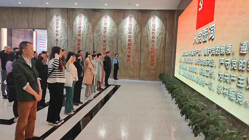 在教育基地大厅,全体党员重温入党誓词,集体接受思想洗礼。
