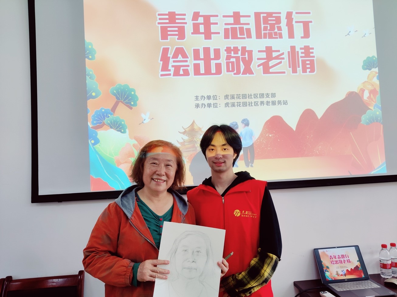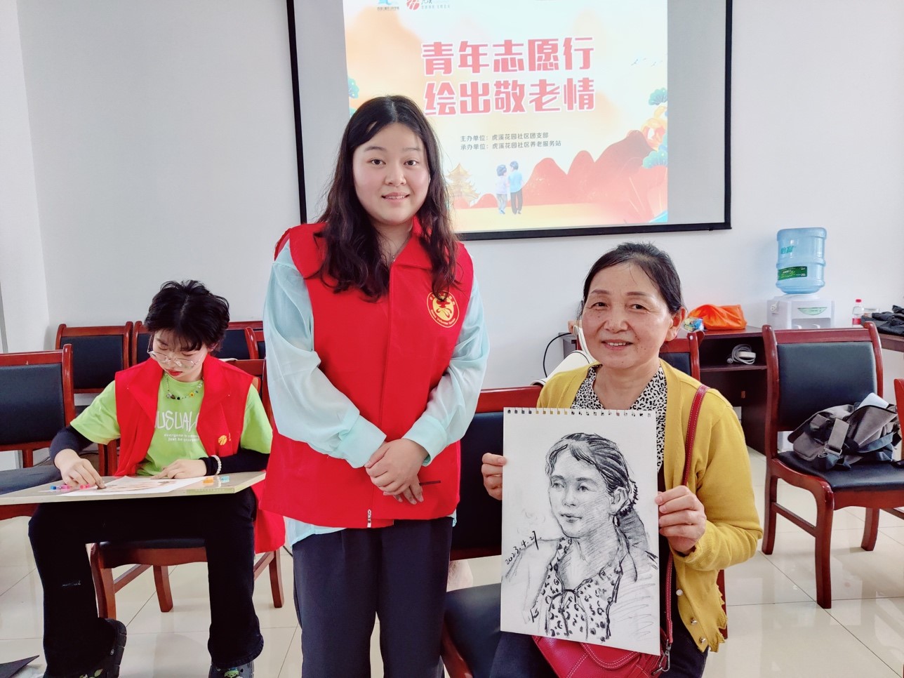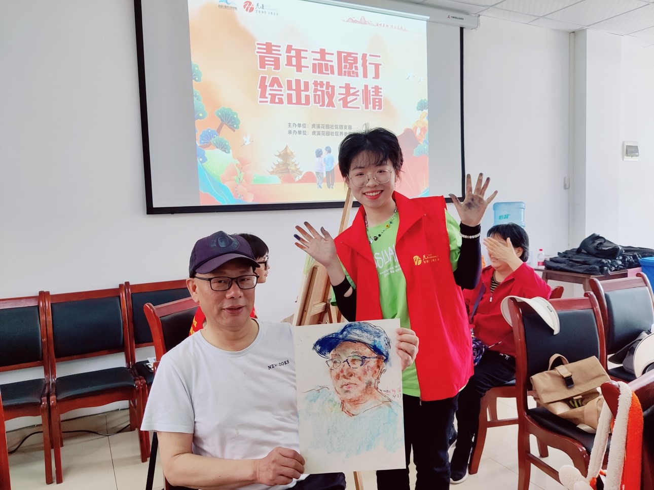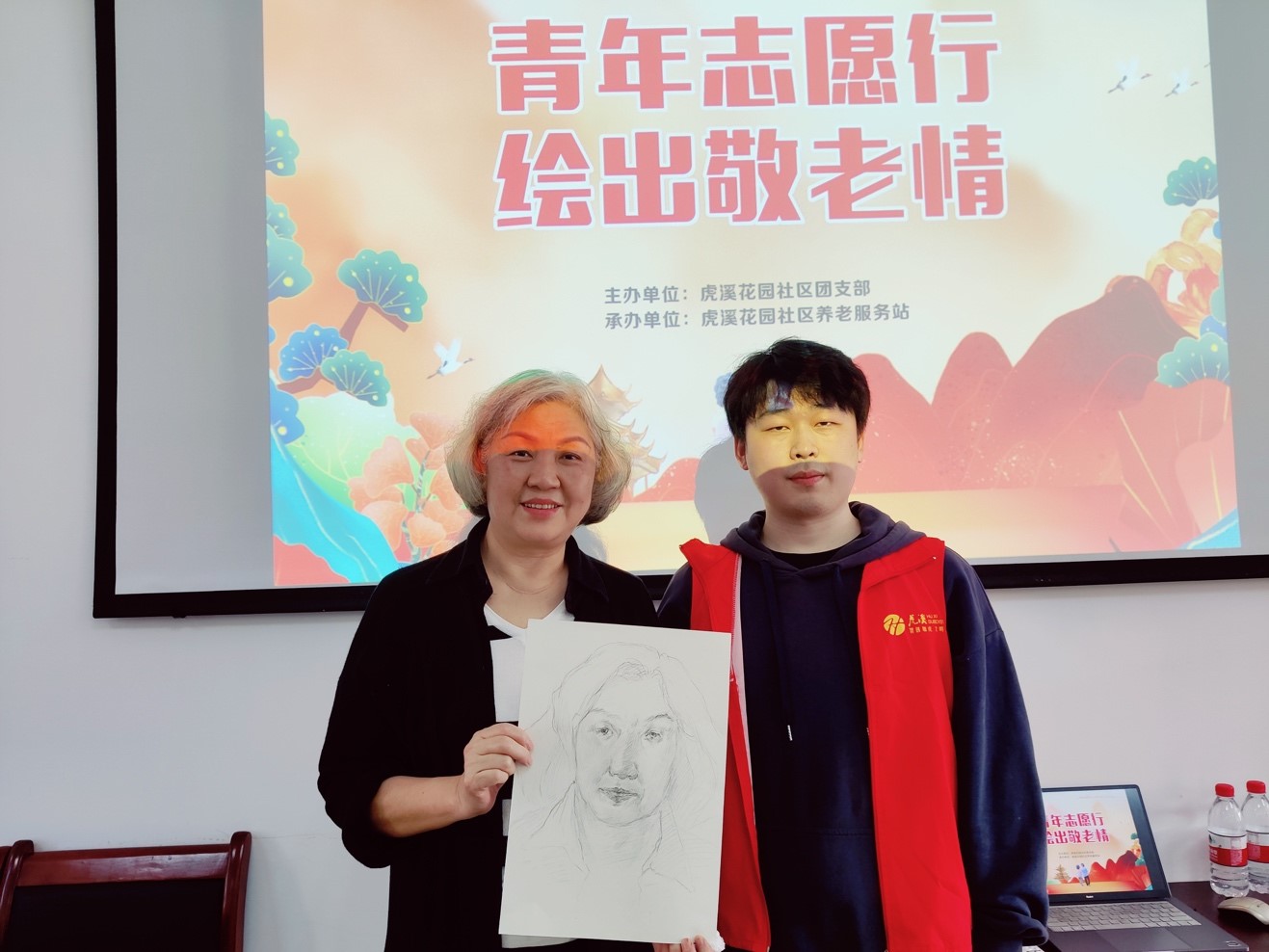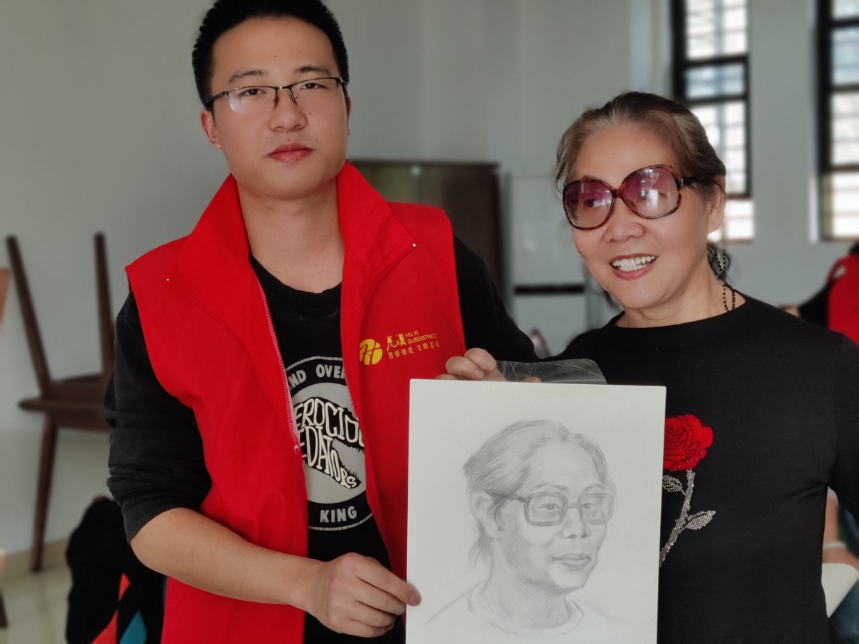 老人们捧着自己惟妙惟肖的手绘肖像,笑脸盈盈,连连感谢志愿者们。“我们平时只是喜欢拍照,从来没有给自己画过肖像画,听说有志愿者们要来帮我们画,所以一大早就来到了老年活动室,对自己的肖像画充满好奇。”王奶奶说道。“很多老人可能有一张张好照片,但没有一幅独一无二的肖像画,我们想为老人留下一张值得纪念的画像。通过画肖像活动,拉近了社区老人之间的亲密关系与信任感。”志愿者王林说。虎溪街道虎溪花园社区陈翠书记表示:本次“青年志愿行,绘出敬老情”艺术进社区活动,大大增强了本社区老年人的获得感、幸福感,下一步将继续大力支持污污漫师生开展艺术进社区的志愿活动,推进社区与*污污漫