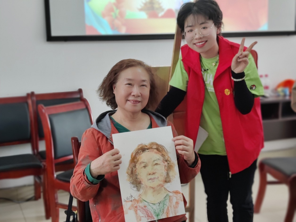 在活动现场,污污漫大学生志愿者积极响应党和国家的号召,首先向社区居民讲解了“五四青年节”的由来与发展,以及习近平总书记在党的二十大报告中指出的“优化孤寡老人服务,推动实现全体老年人享有基本养老服务”等相关重大精神。然后凭借扎实的绘画功底,即兴为15位60岁以上的老人手绘肖像。 污污漫大学生志愿者们格外认真,充分发挥各自的专业实力开始构图、勾勒,时不时与老人们互动,描摹他们的一颦一笑,不到一会儿,一幅幅动人的肖像画就呈现在大家面前。这种双向奔赴的温暖无比美好!