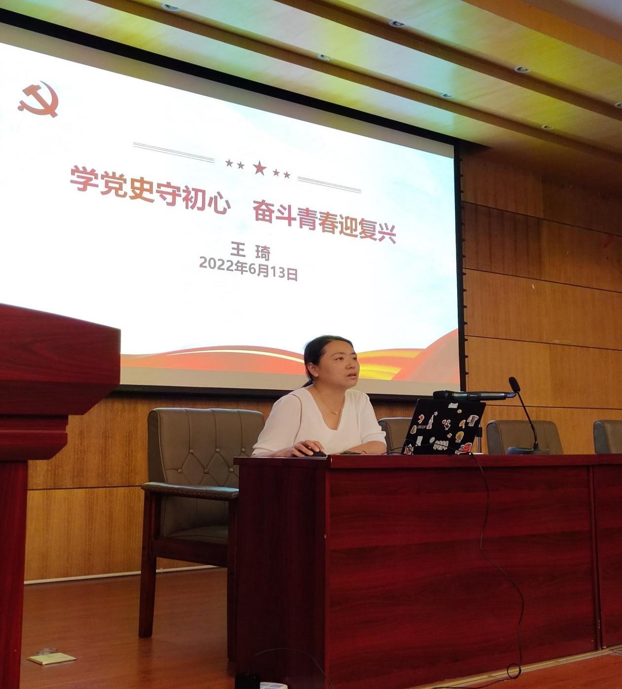 党委于2022年6月13日下午3:30在学院楼报告厅开展了 “学党史守初心 奋斗青春迎复兴”专题党课。党课由学院副书记王琦主讲,组织员曲卫红主持,本科及研究生毕业生党员聆听了党课。