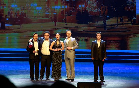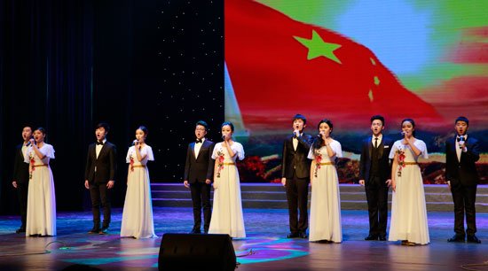 晚会在舞蹈系群舞《鼓舞相合》和音乐系混声四部合唱《请把我的奶名叫》、《弹起我心爱的土琵琶》歌舞声中拉开了序幕。音乐系大四学生杨炉磊一曲《我的父亲》,用歌声演绎了人类永恒的父子深情,研三学生车翔用载歌载舞的独唱《吐鲁番的姑娘》给我们带了不一样的新疆风情,陈燕老师独唱《春天的芭蕾》让我们在隆冬时节感受到春的美好和希望,喻思言老师演唱的威尔第歌剧《唐.卡洛》选段《卡洛.听我说》仿佛带我们穿越时空去到了19世纪的意大利。经典的现代风格无伴奏人声合唱《Lydia》和男女生表演唱《The Boys》让我们看到了一群热爱艺术,勇于探索新艺术的90后男孩女孩的时尚青春气息。女生表演唱《赶秋》、《孔雀飞来》和群舞《那座秀山那片情》将我们带入土家族和傣族村寨,曼妙的舞姿、优美的歌声以及动人的传说,田野气息迎面扑来,赏心悦目。舞蹈系男子群舞《巴蜀战歌》向我们展示出了巴渝大地沉雄有力、顽强勇敢的男子汉气魄。由国家一级演员、音乐系张礼仁教授领衔的男生三重唱《信仰》、青年教师喻思言领衔的歌剧片段《让我们携手同行》和学生表演的《共青团》之歌奏响了时代主旋律,振奋人心,现场观众不由自主全场同唱,台上台下沉浸在歌声的海洋中。音乐系程云莲老师和学生阮响琳二重唱《炫境》将全场观众带入了音乐的炫境和对新年憧憬的炫境中。最后在苏勤、秦勤二位老师和学生们同唱的《饮酒歌》中,“让我们高举起欢乐的,胜利的酒杯”,庆祝2015年胜利结束,2016年欢乐美好的到来,为晚会画上了完美的音符。