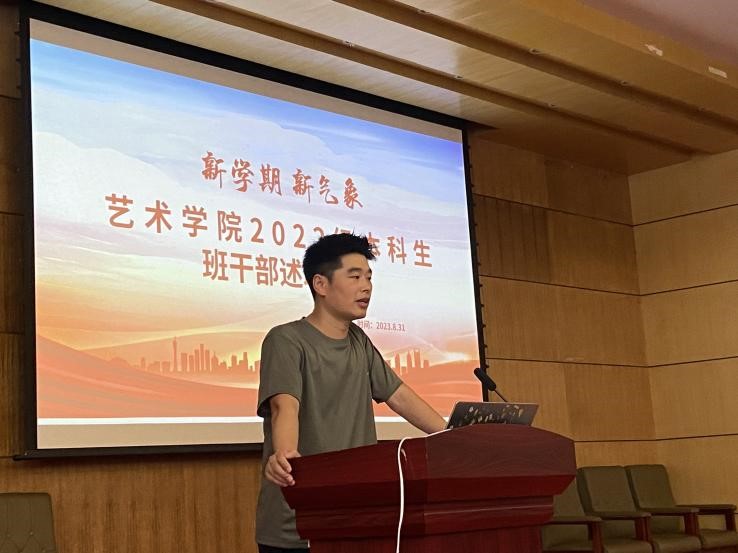 2022级本科生在学院办公楼报告厅召开2022-2023届班委述职暨2023-2024届班委换届竞选大会。会议由2022级本科生辅导员陈龙主持。