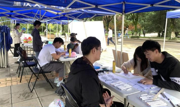 学生办公室辅导员陈龙组织策划,心理协会和艺术心灵协会共同承办的“绘梦追忆,疗心悦己”的心理健康教育活动在虎溪校区一食堂南广场举行。