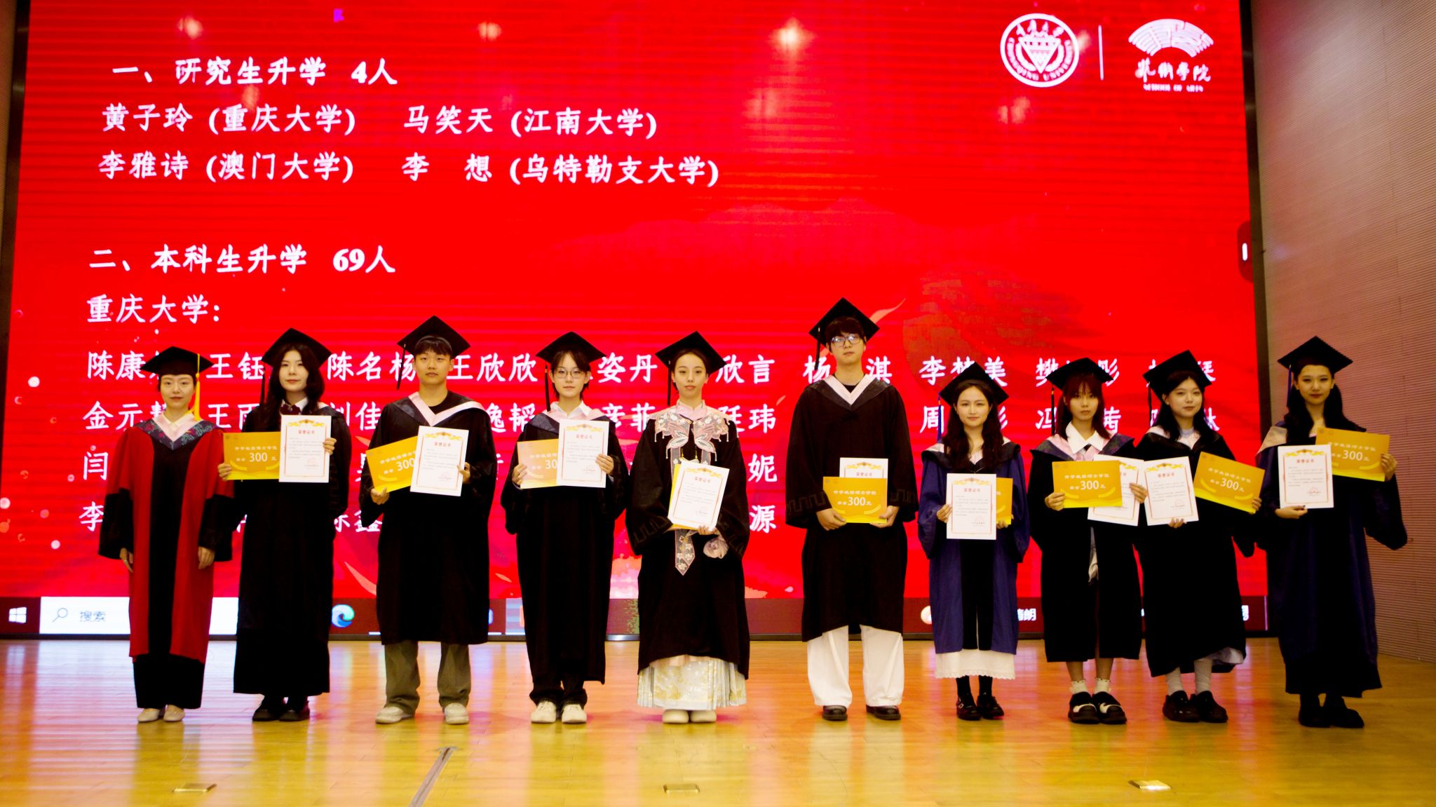 优秀毕业生名单,并为优秀毕业生代表颁发荣誉证书。
