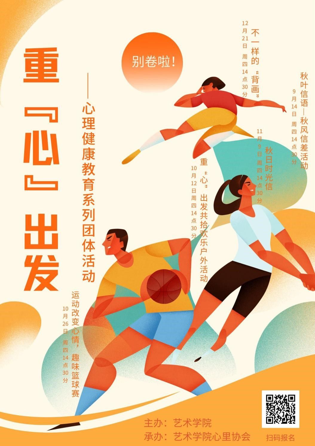 10月份开展了“重‘心’出发,共拾欢乐”和“运动改变心情,趣味篮球赛”户外团体心理辅导活动,旨在减轻同学们学习生活中的压力和烦恼,在忙碌又紧张的学习之余,找到快乐,放松身心。