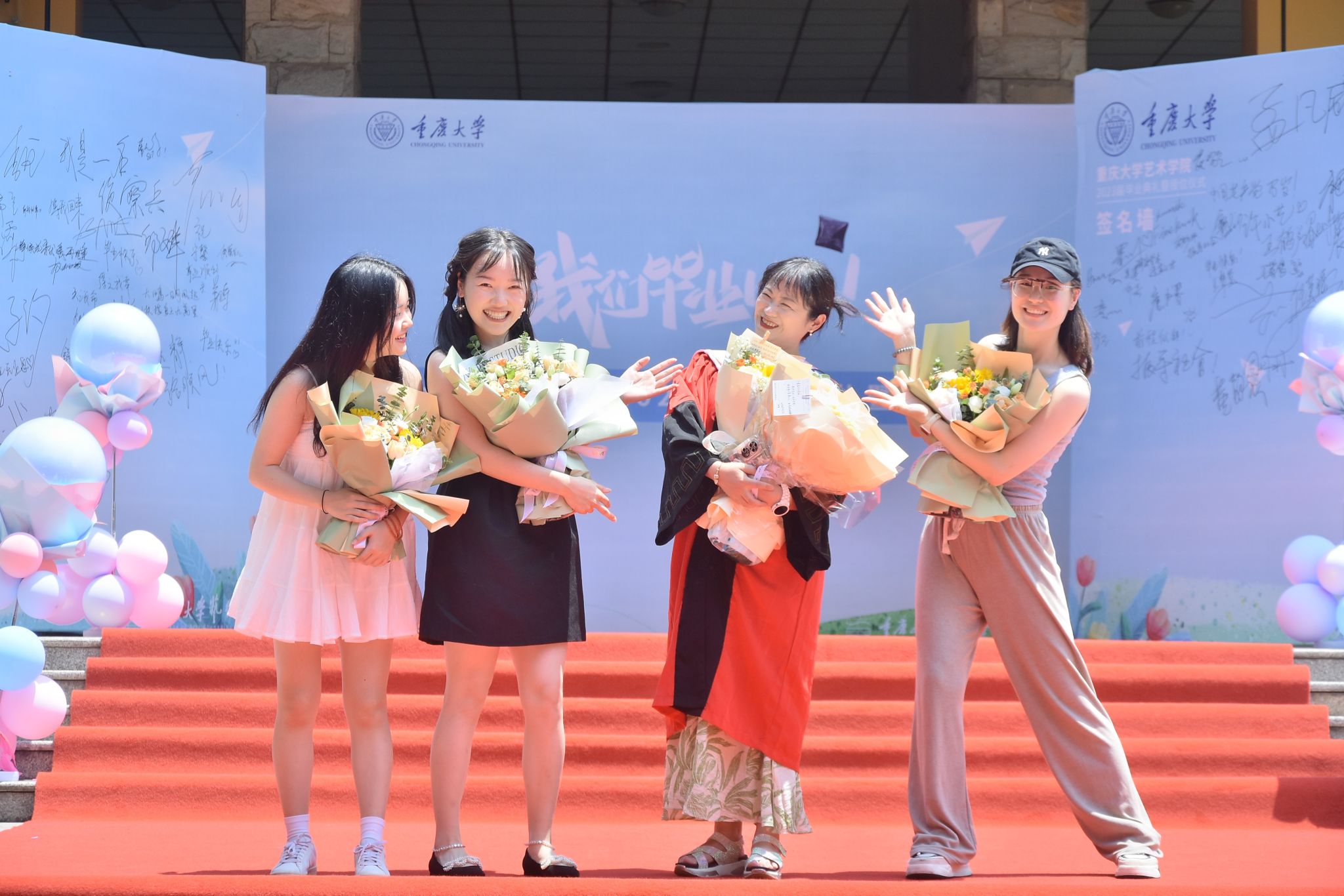 楼下的红毯上走秀、签名、合影,记录这美好且特别的一天。六月的烈日也浇灭不了同学和老师们喜悦激动的心情。