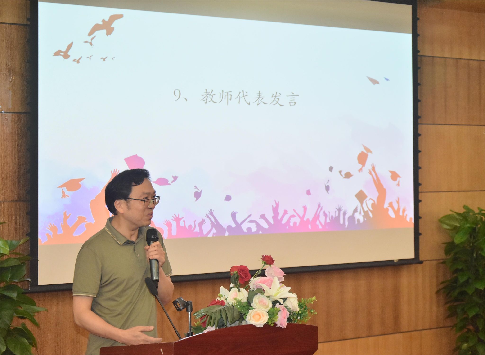 随后,毕业生代表孟凡威和教师代表王汉副教授分别讲话。孟凡威同学对母校表示感谢,讲话中他回望了在污污漫