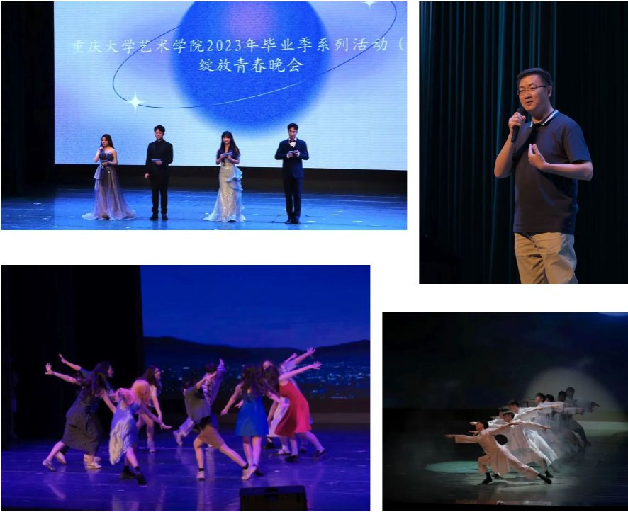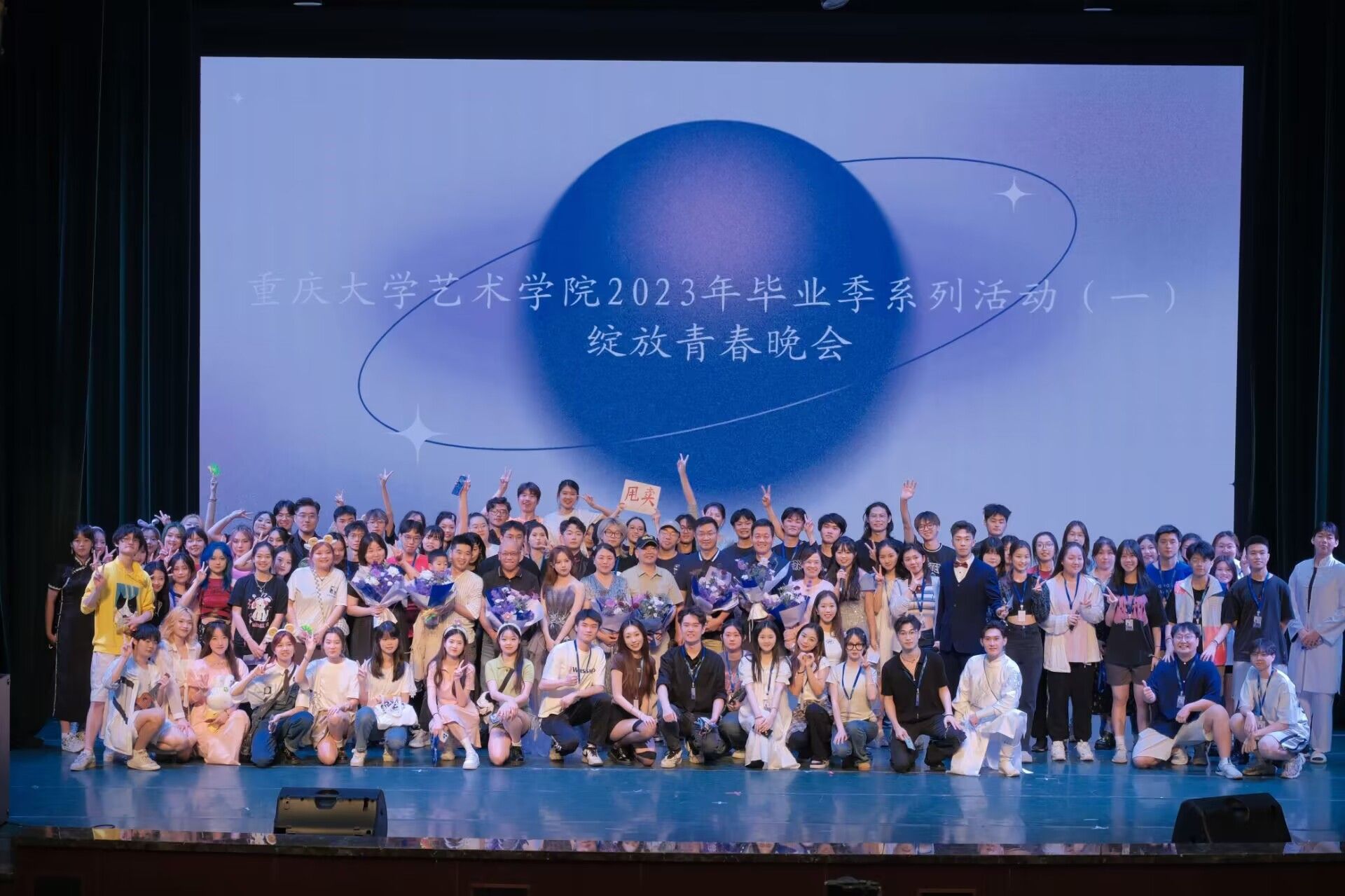 “青衿相携、与艺同行”2023年毕业季系列活动:绽放青春晚会在虎溪小剧场如期举行。学院领导及学生500余人共襄此次晚会。