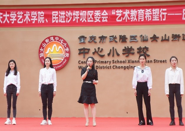 音乐系师生与武隆区仙女山镇中心小学校的学生们一同唱响《没有共产党就没有新中国》,在清脆嘹亮的歌声中,本场艺术教育希望行圆满落幕。