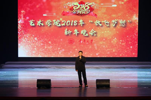 院长雒三桂给在场观众送上了新年的祝福。 随后舞蹈《艺术花开》以优美的舞姿拉开了整场晚会的序幕。晚会节目精彩纷呈,一个个精彩的节目获得了在场观众的阵阵掌声。舞蹈《耕》,光影间,以舞蹈的形式,体现了劳动妇女的伟大。歌曲《月亮谣》,穿着民族服装的歌者释放着民族优美的歌声。《男生小合唱》,歌者声线动人,洪亮的歌声,引得台下观众们阵阵掌声。民族舞蹈《布衣者》,低沉的音乐与节奏,伴随着着舞者的动作,展示了民族舞蹈的精彩。晚会高潮迭起,最后以一曲《为祖国干杯》结束,豪迈的歌声久久萦绕在耳。