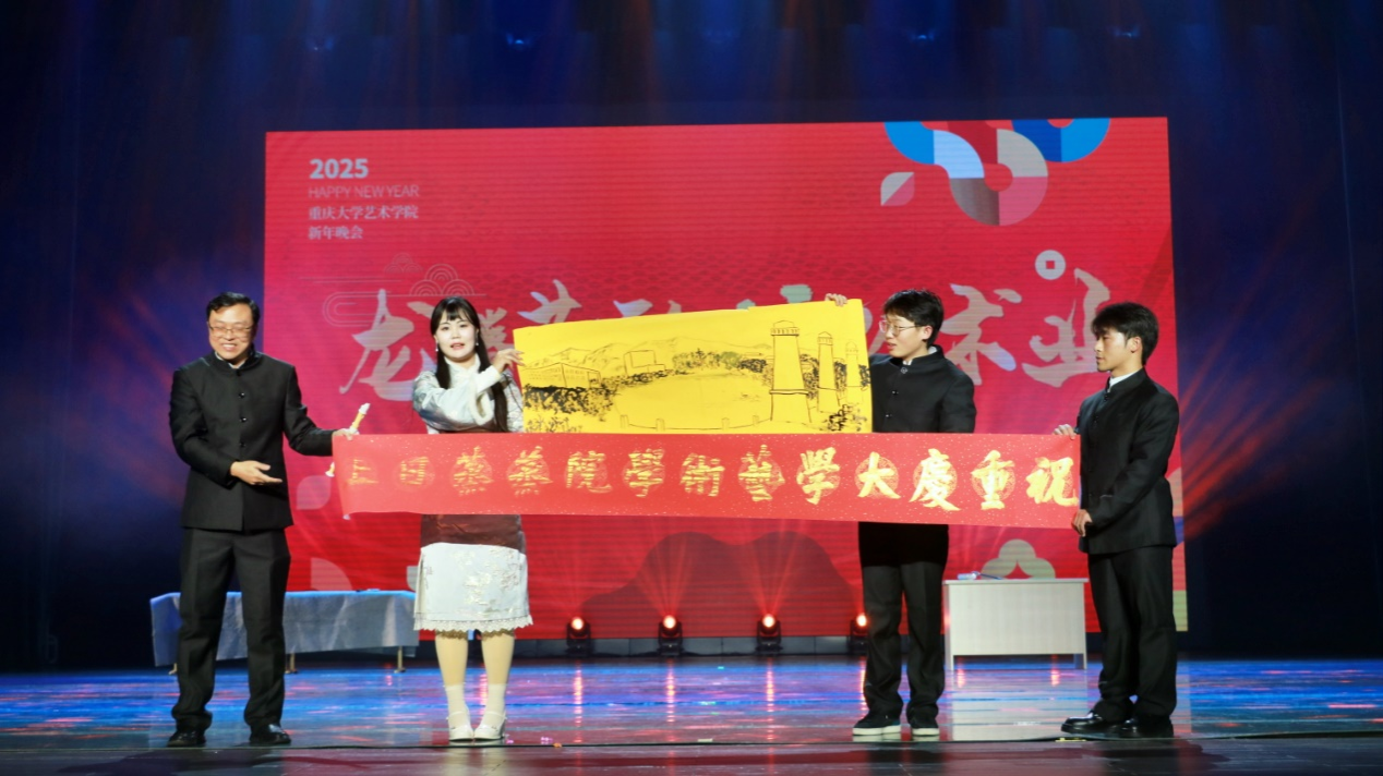 在虎溪校区大剧场举办了以“龙腾艺彩、蛇绘术业”为主题的2025年师生联欢新年晚会。这场盛会汇聚了学院师生的才华与创意,展现了*污污漫