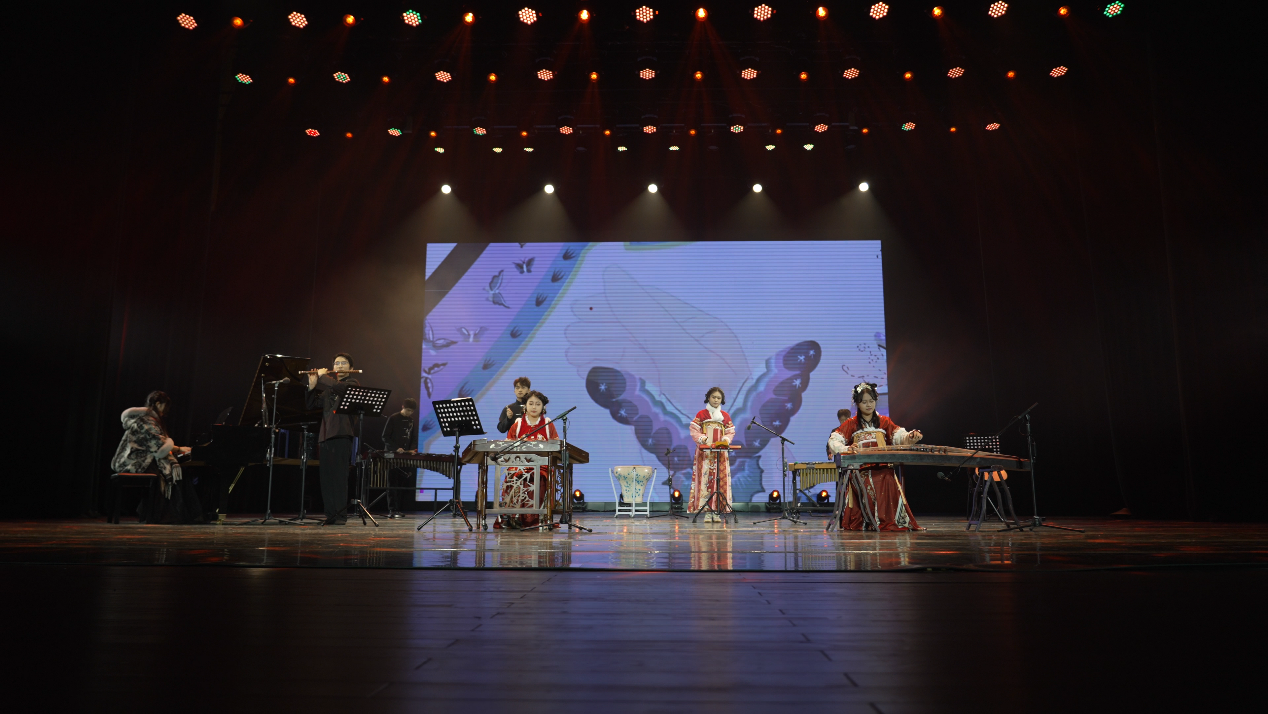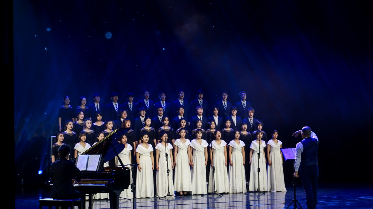 晚会分为三个篇章,第一篇章《艺气风发·术新人》以一段温馨的开场视频和器乐表演《CHINA-E》拉开序幕,音乐系师生带来的混声合唱《夜的音乐》以其和谐的旋律和深情的演绎,迅速点燃了现场观众的热情。设计学系师生的《设计之都》节目巧妙地将现代街舞与传统文化书法相融合,展现了艺术与设计的有机融合,赢得了观众的热烈掌声。