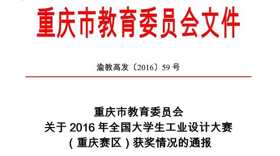 关于2016年全国大学生工业设计大赛(重庆赛区)获奖情况的通报
