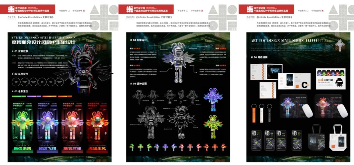设计学系学生作品在多个类别中取得好成绩,共斩获一等奖7项、二等奖13项、三等奖4项(部分作品展示附后)。