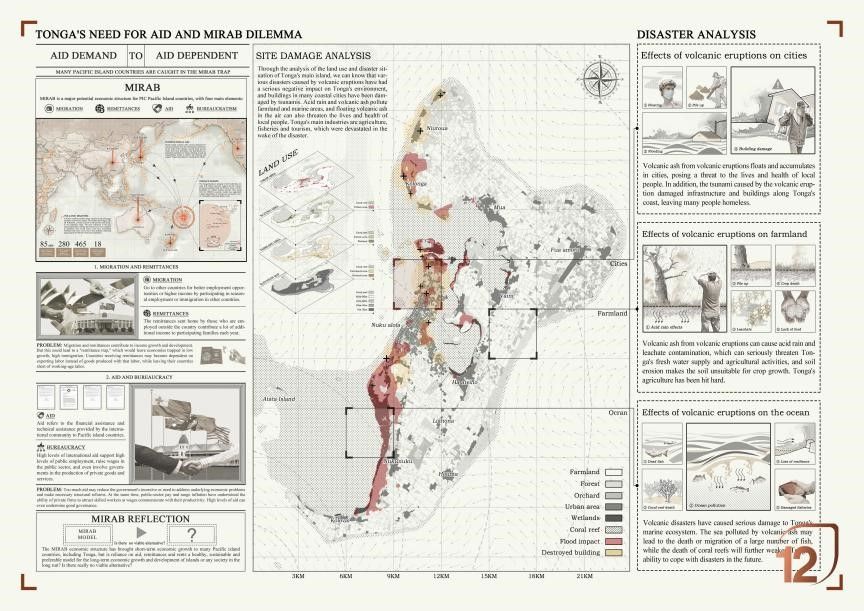 蒋帅同学的作品从自然灾害所引发的生态及产业不可持续问题出发,融合多学科知识,从设计学科角度给出了可行的解决方案。
