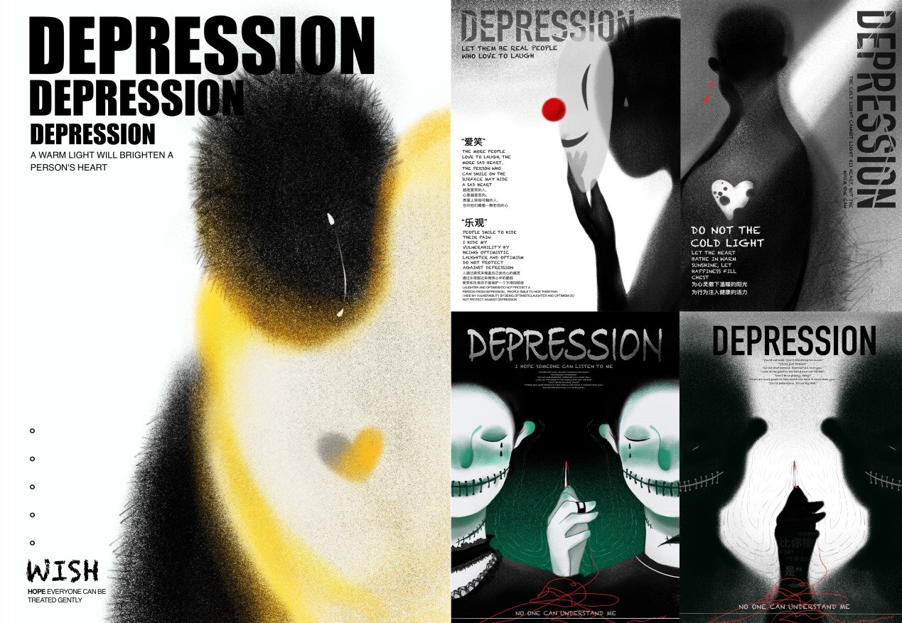 设计介绍:本设计关注网络社会中不断放大的生活和社交压力。如何防止抑郁和帮助身边已经抑郁的人是一个很重要的问题。她用细腻的质感和肌理,以共情的视角探索个体与他者之间的情感联系。用数字海报广泛的传播形式让焦虑情绪和抑郁状态被看见。温暖和帮助每个人身边可能存在的抑郁人群的健康状况。每张海报通过肌理插画的表现方式传递不同抑郁情绪的表现,以及如何关怀抑郁症患者,希望呼吁和提醒大众多关心身边的人。