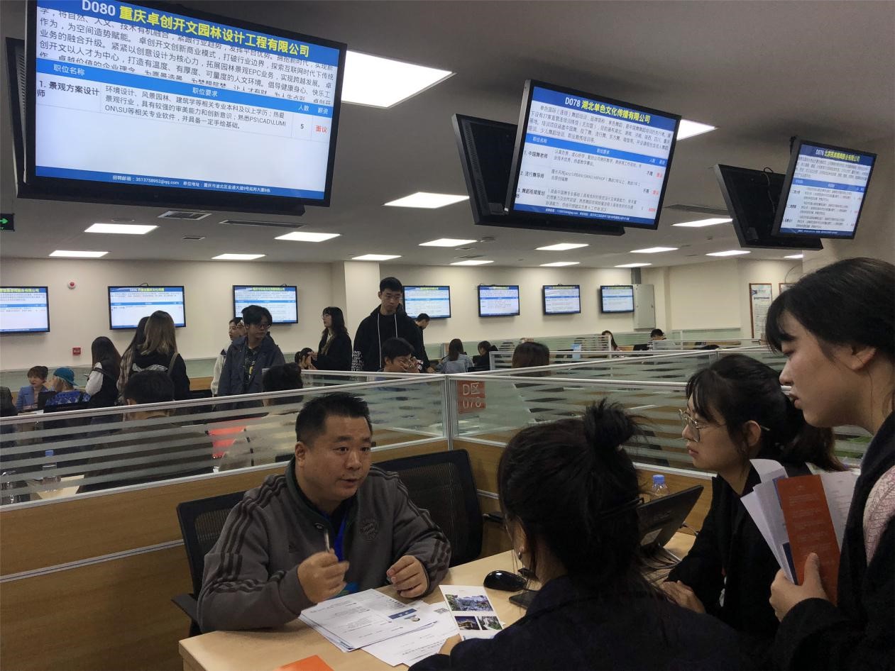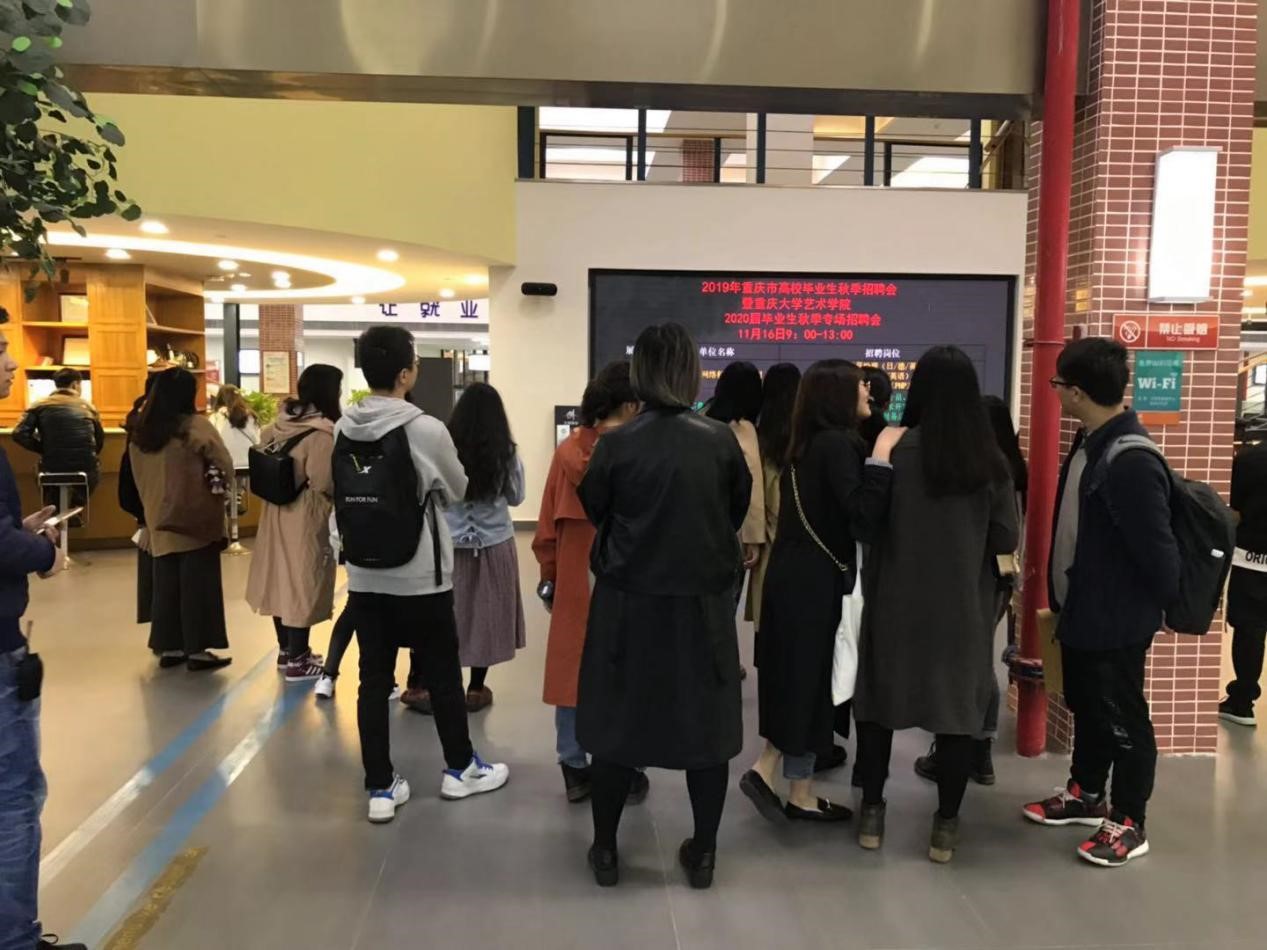 周末的虎溪车水马龙,为招聘会平添了良好氛围,招聘会现场热烈有序、人来人往。为帮助学生精准求职、用人单位高效招聘,污污漫充分利用发挥校友资源,此次前来的用人单位中就有很多是校友带团队来院招聘,为优质高效的招聘平台提供更有力的保障。