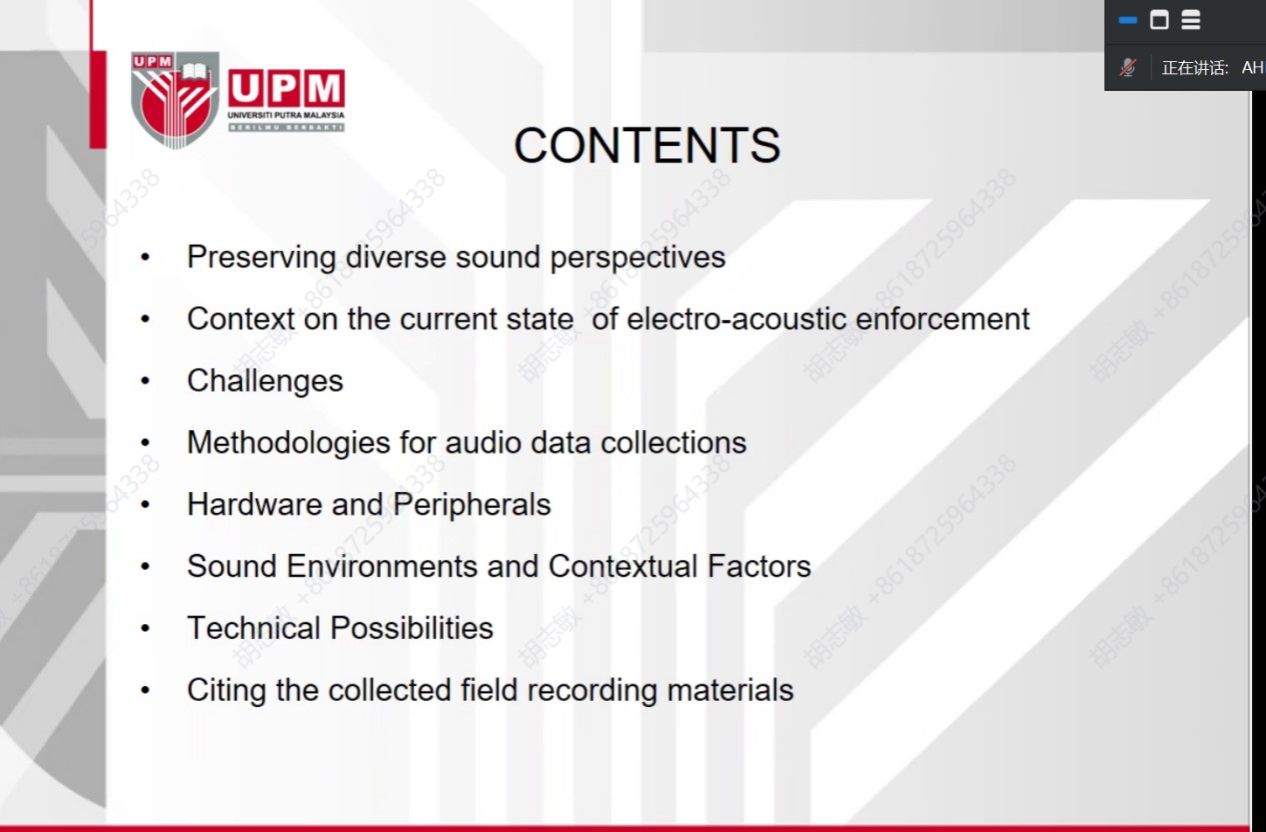 本次讲座主题是民族志音频相关研究,Ahmad Faudzi Musib就“民族志研究中面临的取样困境”“设备选取与样本保存计划”以及“解决音频设备类困境的新设备使用及保存田野音乐内容方式”等三方面,深入探讨了音乐类研究可能遇到的挑战,并提出了可行的解决方案,同时展示了民族志音频现场录音硬件和外围设备的操作方法。