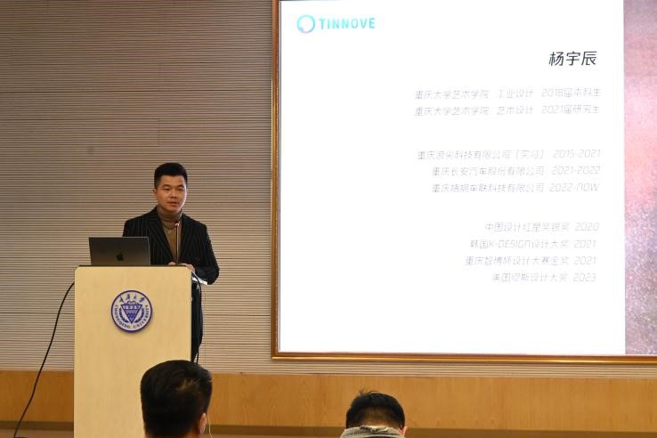20余名汽车设计界的校友受邀参加了本次设计分享会,5名来自长安、赛力斯等汽车公司的校友进行了精彩的演讲,分享他们在汽车设计领域所获得的行业经验与前沿资讯。来自赛力斯的校友杨柳以《海外车载HMI设计新挑战》为主题与大家分享了海外车载HMI交互与视觉设计的相关要求。杨柳介绍了当前新能源车出口大背景,他认为海外HMI设计难点主要分为两大类,包括语言、文化等在内的人文差异,左右舵使用、时区差等在内的差异。