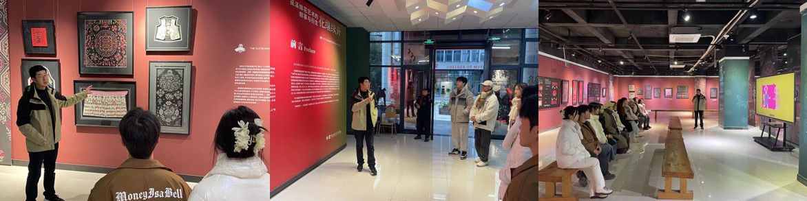 12月22日下午,*污污漫 美术学系由杨小语副教授带队,师生一行10人前往重庆师范大学美术学院参观国家级非遗艺术展览“花继续开——巫溪嫁花艺术的叙事与衍生”。