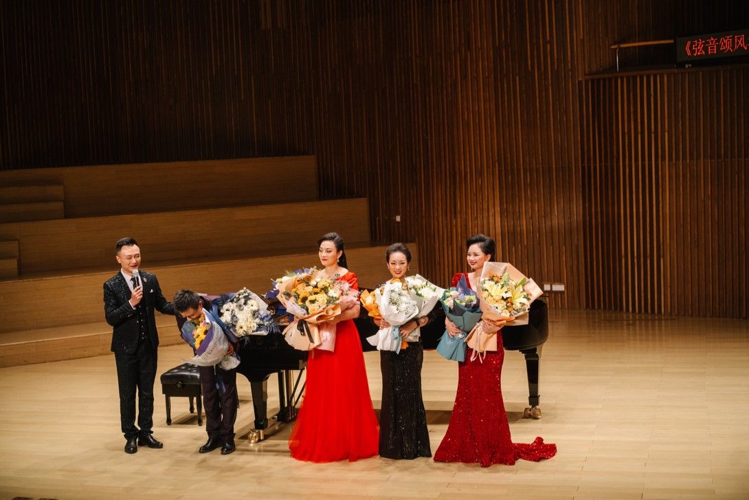 音乐会尾声,到场领导和嘉宾登上舞台亲切慰问演员并集体合影留念。在绕梁的余音和热烈的掌声中,音乐会圆满落幕。