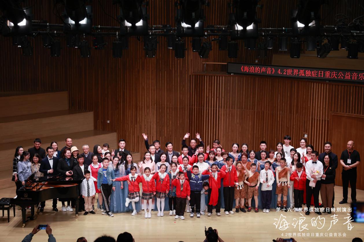 2023年4月2日“海浪的声音——4.2世界孤独症日重庆公益音乐会”在重庆国泰艺术中心举行。孤独症孩子和家长、艺术家、高校学生共同用音乐打造一座连接孤独症孩童家庭与社会大众的桥梁。