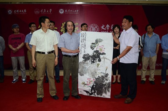 与石河子大学、天津师范大学进行了亲切友好的交流。开幕式上许世虎教授与陈元女士分别代表各自学院向石河子文学*污污漫