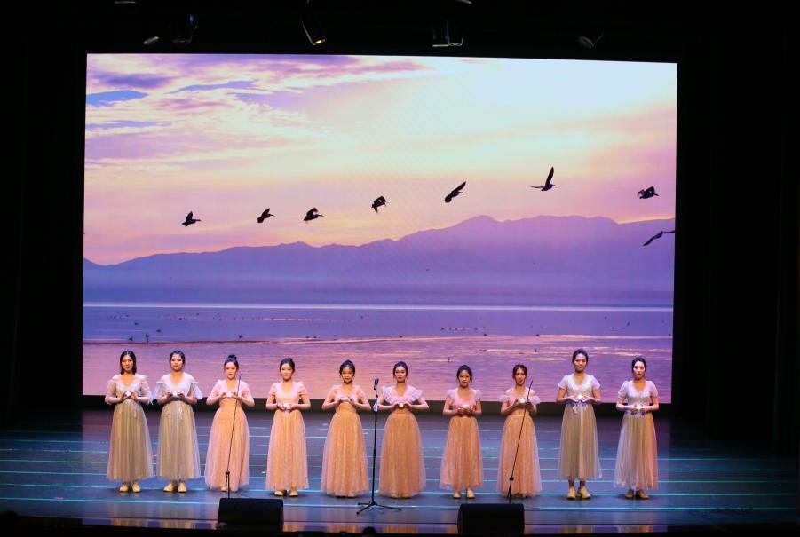 晚上七点,音乐会在热闹欢快的云南花腰彝族民歌《天上雾腾腾》中拉开序幕;接着是安静抒情的小合唱《飞鸟和鱼》;