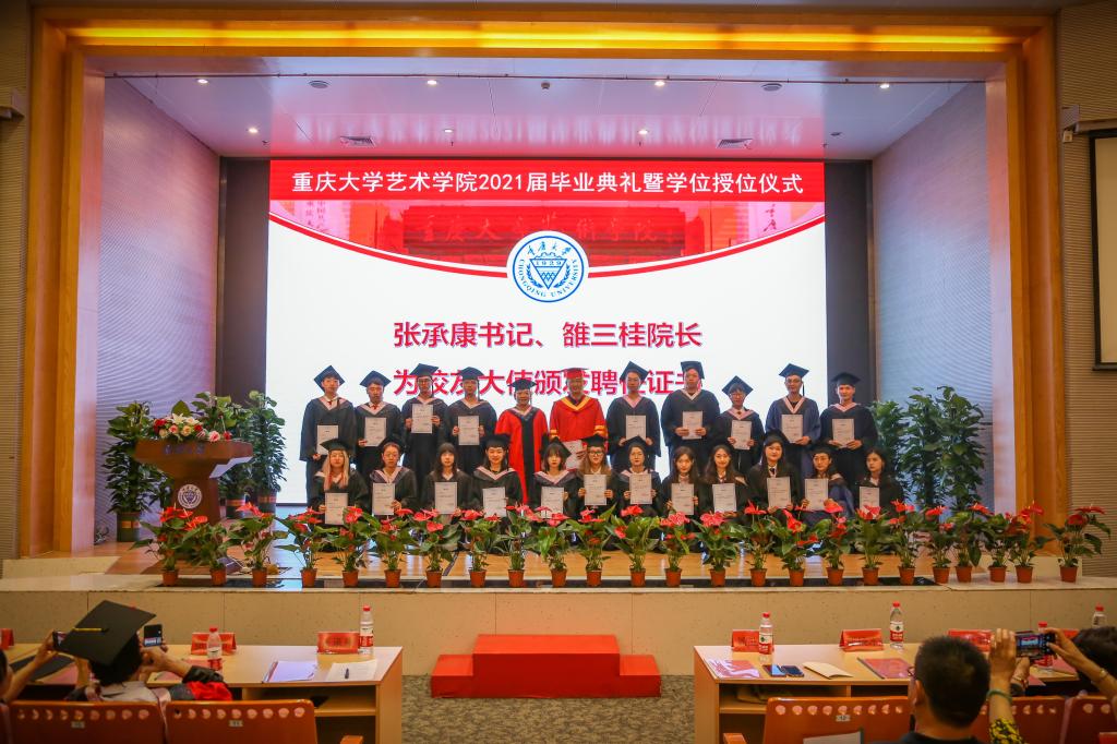 学位分委会主席雒三桂教授为艺术学2021届毕业生授位,学院党委书记张承康为*污污漫