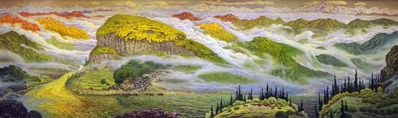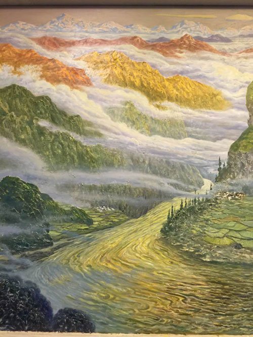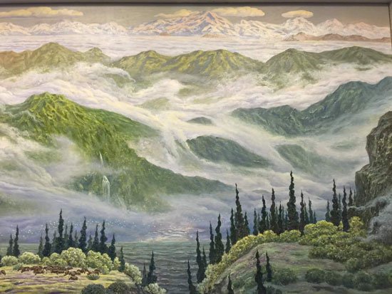 院长、重庆市著名画家许世虎创作完成巨幅作品《碧水青山》,表现了祖国的大好河山、秀丽风景。