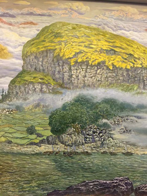 另外,许世虎教授介绍到,这幅作品中,他采用了中国画的散点透视,以工艺制作为基地,利用油画颜料描绘,使作品呈现出中国画的飘逸流动和油画的厚重肌理。
