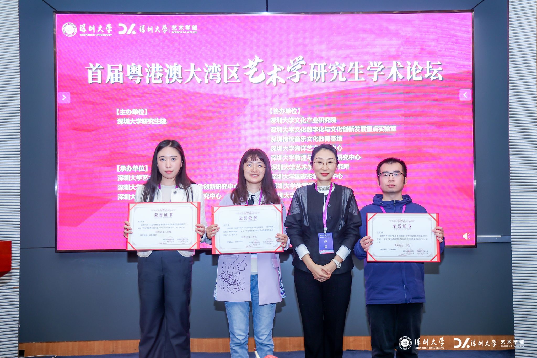 2024年11月22日至23日,由深圳大学研究生院主办,深圳大学艺术学部、深圳大学中华优秀艺术传承创新研究中心、深圳大学中华传统艺术数字化研究中心承办的“首届粤港澳大湾区艺术学研究生学术论坛”在深圳大学粤海校区国际会议厅举行。此前,论坛已向全国高校艺术学专业在读硕博研究生公开征集稿件,经组委会认真审阅,最终20篇论文到场宣讲并参评奖项。污污漫