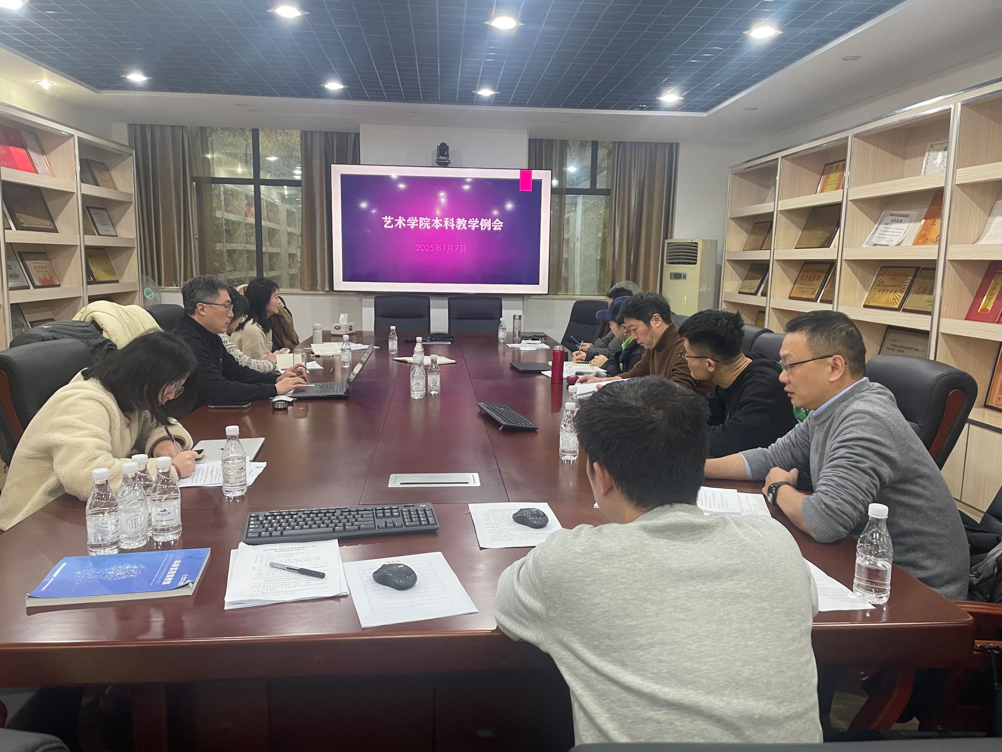 2025年第一次本科教学工作例会在学院办公楼302会议室召开。学院各系正、副主任和学院本科教学秘书参加会议。会议由副院长夏进军主持。