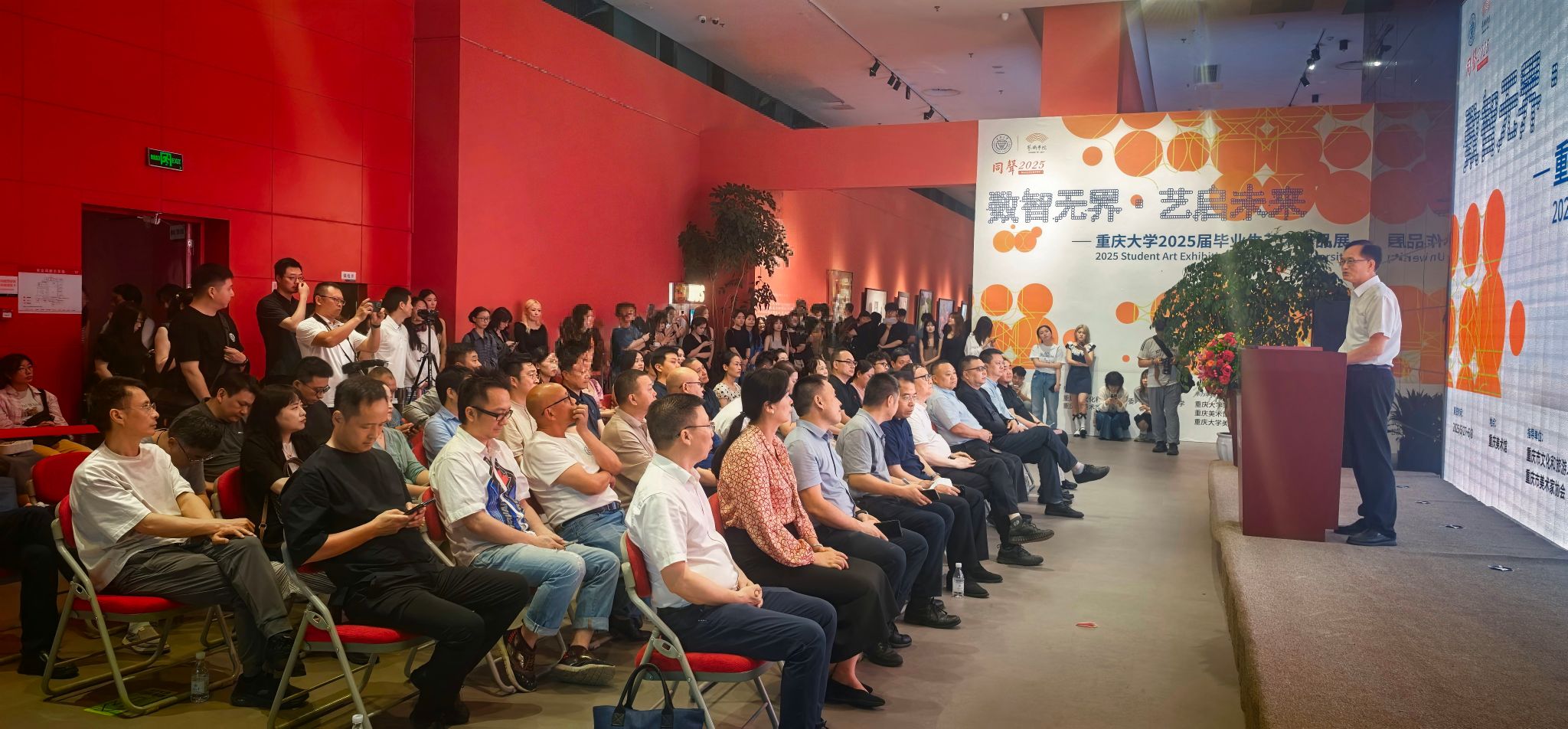 王发荣在致辞中指出,本次展览充分展现了数字智能技术与艺术创作的深度融合,体现了当代青年学子对艺术的独特理解和无限创意,是一场形式多元、内涵丰富的艺术盛宴。他表示今后将进一步加强双方合作深度、效度,推动重庆艺术人才培养创造新的高度。
