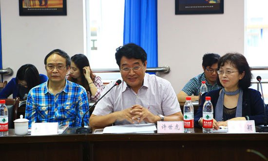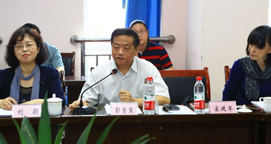 院长许世虎教授传达了中国高等教育学会美育专委会2014年年会、2015年学术会议精神,重庆市高教学会副秘书长刘颖代表高教学会作了讲话,中国高等教育学会美育专委会常务副会长、北京大学著名教授彭吉象传达了教育部关于加强学校美育教育工作的精神。