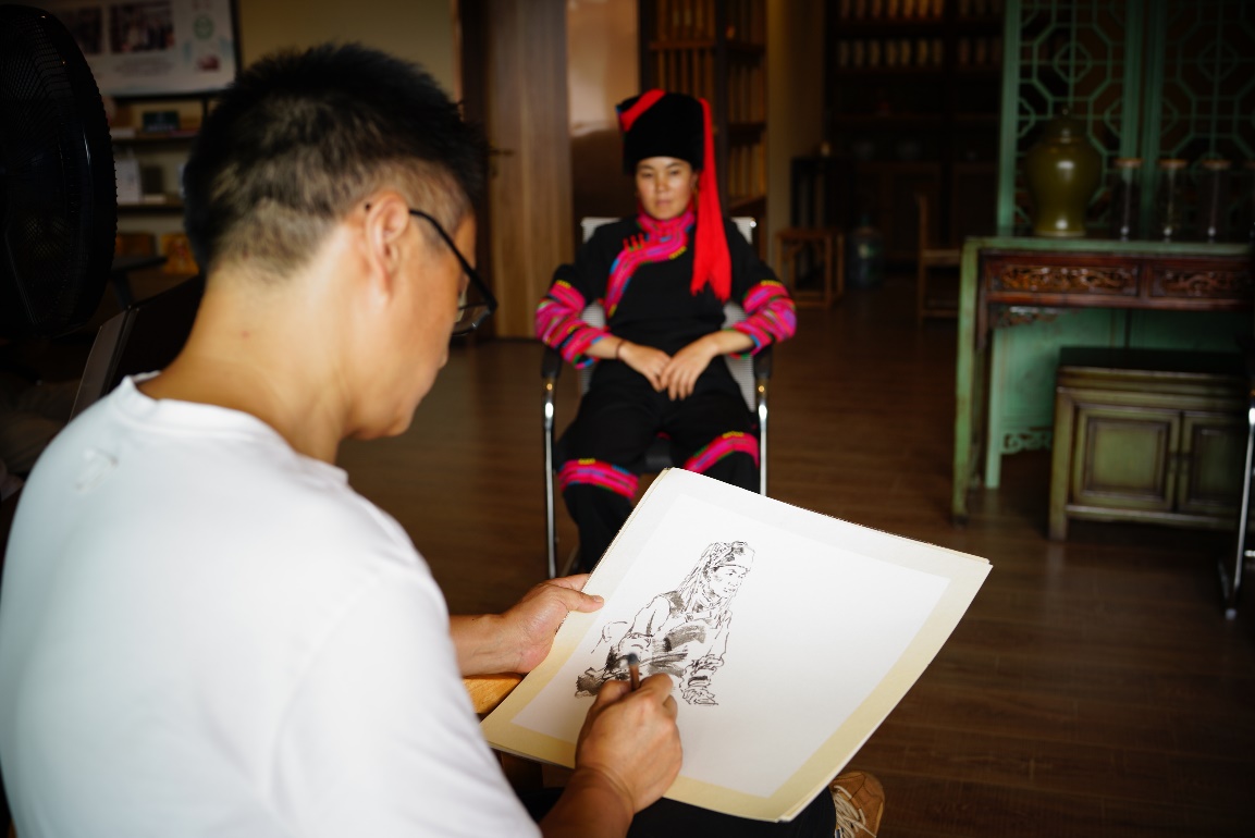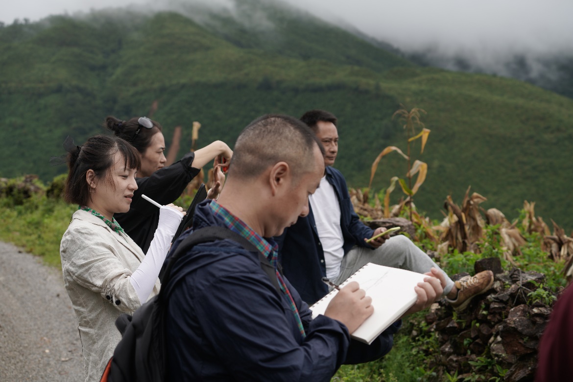 八月的绿春是个多雨的季节、每天平均要有两次雷阵雨,考察沿途,因连续降雨导致的路面塌方时常遇到,但并未影响老师们写生创作的激情。在这些古朴、宁静的小山村里,老师们通过走访个别脱贫户的家庭,深入挖掘反映脱贫攻坚时代进程中的感人事迹,记录民俗风情,记录扶贫工作中的点滴细节,展现国家生态文明建设和扶贫工作所取得的突出成绩。