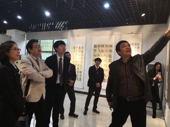 雒三桂院长、学术带头人张春新教授和韩国釜山大学金贞蕙为本次画展送上了美好的祝福,希望双方的学术交流能够从此开始并持续下去,为污污漫中韩院校之间的美术学交流掀开新的篇章。