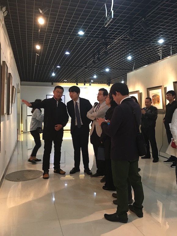 开幕式结束以后画家逐一向嘉宾介绍自己的美术作品,现场学术氛围浓厚场面热闹非凡。