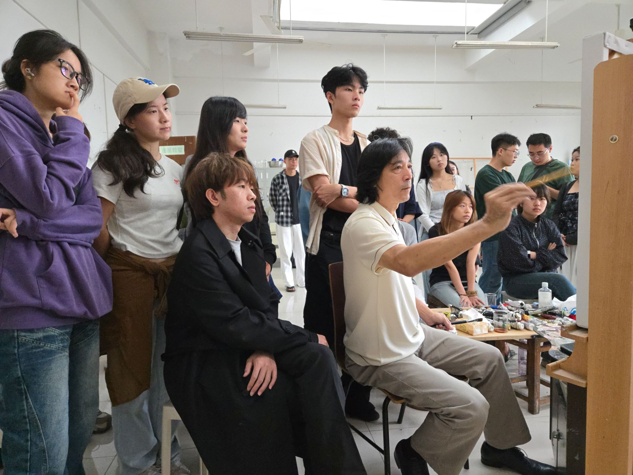 马刚教授以“油画人物写生”为核心,结合自身多年艺术实践与教学经验,从技法要点、创作思路、经验心得等多个维度展开分享。马刚教授通过现场示范,直观展示了油画人物写生的完整流程,细致讲解了写生中色彩调配、光影捕捉、人物神态刻画等关键环节的实操技巧,还结合过往经典写生案例,生动呈现了如何在创作中平衡写实与艺术表达,为在场师生提供了极具实用性的指导。