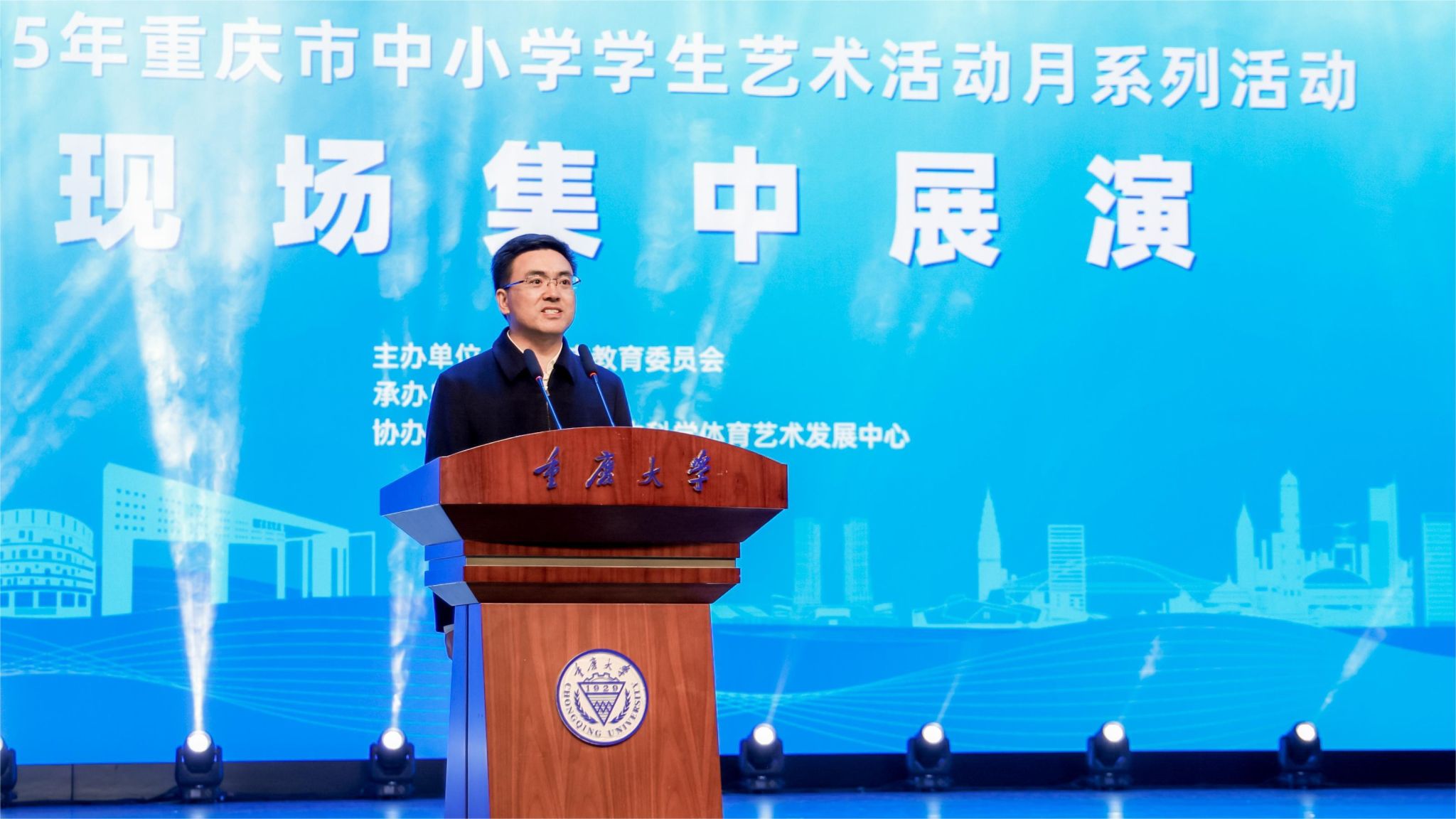 党委副书记冯业栋在致辞中指出,将进一步加强与各中小学的交流合作,共同探索“大中小学一体化”美育育人模式,为培养更多德智体美劳全面发展的时代新人贡献力量。重庆市委教育工委委员、市教委副主任江鹏宣布现场集中展演活动正式启动。