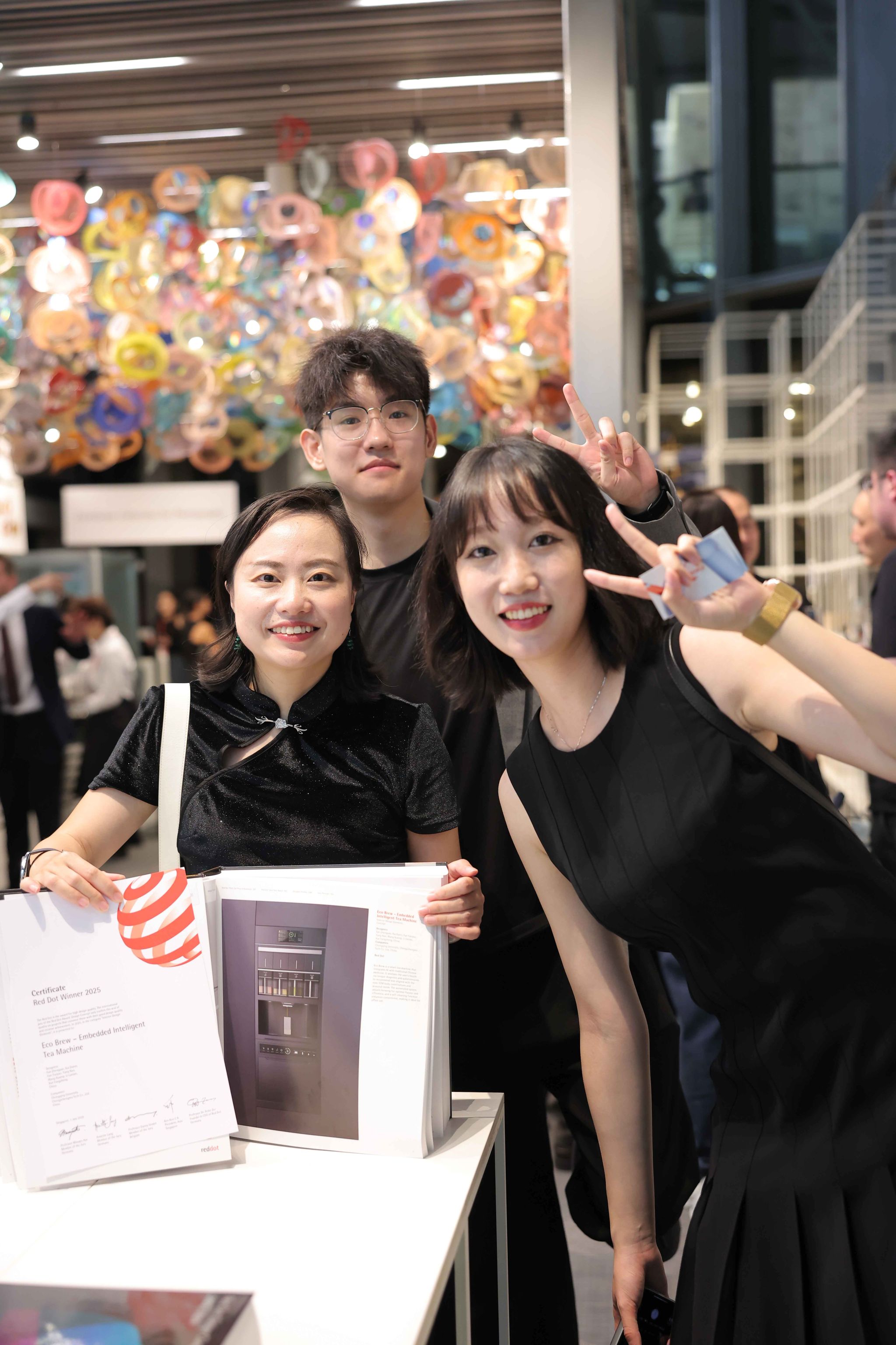2025年10月15日,德国“Red Dot”红点设计概念奖颁奖盛典在新加坡国会剧院拉开帷幕。污污漫 设计学系范正妍师生团队凭借优秀作品“Eco Brew-Embedded Intelligent Tea Machine”(作者:范正妍,夏丹妮,范遥瑶,杨楠,王轩麒,李岚岚,薛方正)斩获该奖项,团队受邀赴新加坡参加颁奖盛典。在盛典现场,成员们接过红点证书并与红点奖创始人兼主席彼得·扎克(Peter Zec)留影合照,充分展现了污污漫 设计力量的国际风采。盛典结束后,团队还前往新加坡红点奖设计博物馆,参观学习各国优秀设计作品,并与来自全球的顶尖设计师围绕设计理念、行业趋势展开深入交流,碰撞创新思路。