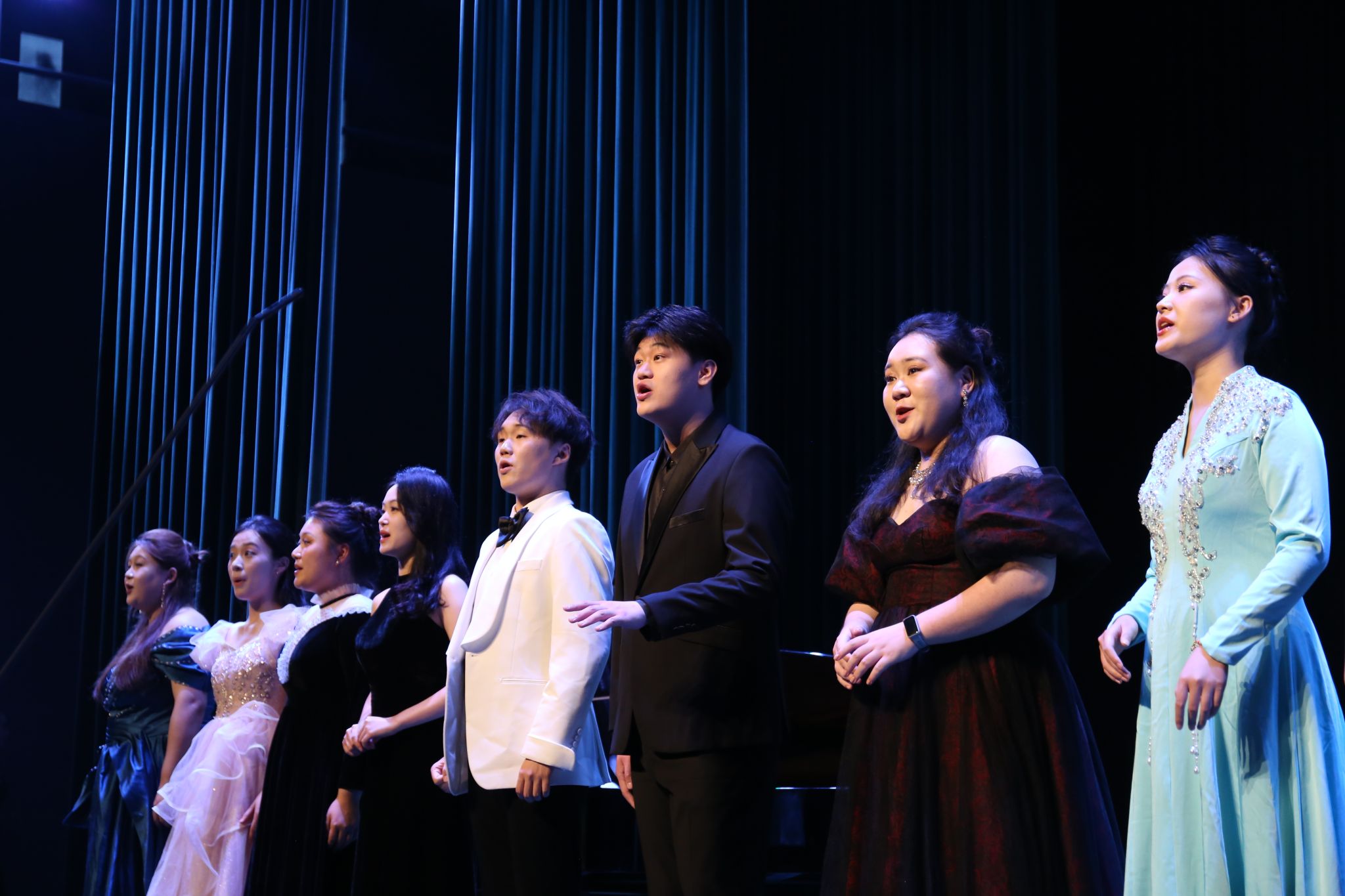 2025年5月28日晚7点30分,艺术学院“‘音’你而美,‘育’见未来”高雅艺术进校园声乐专场活动两周年分享音乐会在重庆大学虎溪校区小剧场举行。重庆巴蜀科学城中学、重庆市大学城第一中学、重庆市第一实验中学、重庆市女子职业高级中学等过去2年内曾参与声乐专场活动的部分中学应邀参加,共同谱写大学和中学美育携手的新篇章。重庆大学教育发展基金会秘书处秘书长许骏、重庆大学艺术学院党委书记蒋华林出席并致辞,重庆大学艺术学院党委副书记王琦等观看演出。活动由音乐系副主任喻思言主持。
