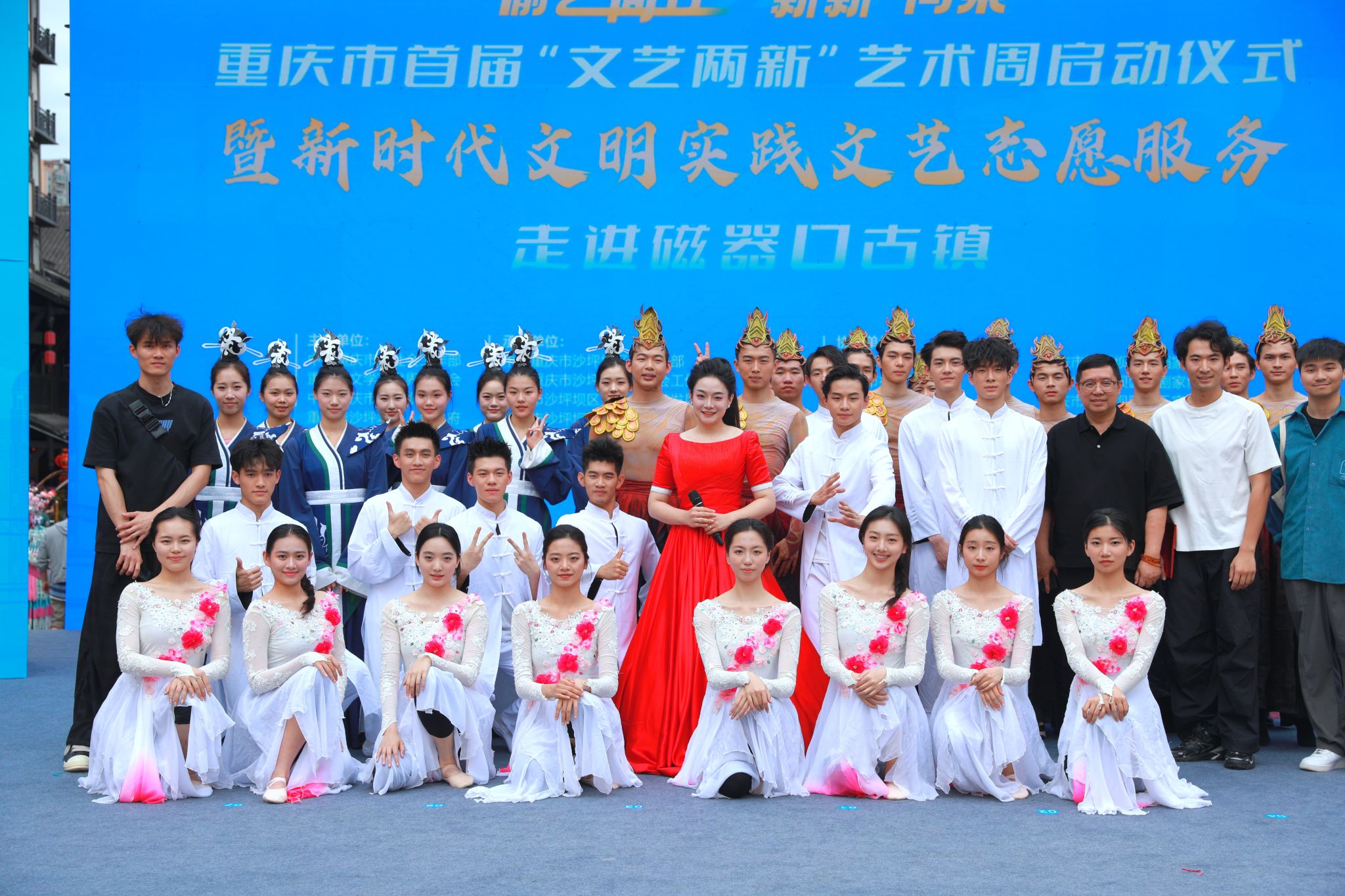 2025年5月9日上午,由重庆市文联等单位主办的渝艺同行“新新”向荣——重庆市首届“文艺两新”艺术周启动仪式暨新时代文明实践文艺志愿服务活动在磁器口古镇举行。在沙坪坝区文联、沙坪坝区舞蹈家协会的组织协调下,艺术学院舞蹈系、音乐系师生携三部原创作品亮相舞台,以精湛的技艺与深厚的文化底蕴为活动注入青春活力,展现了学院在服务社会、推动“文艺两新”高质量发展中的突出贡献。