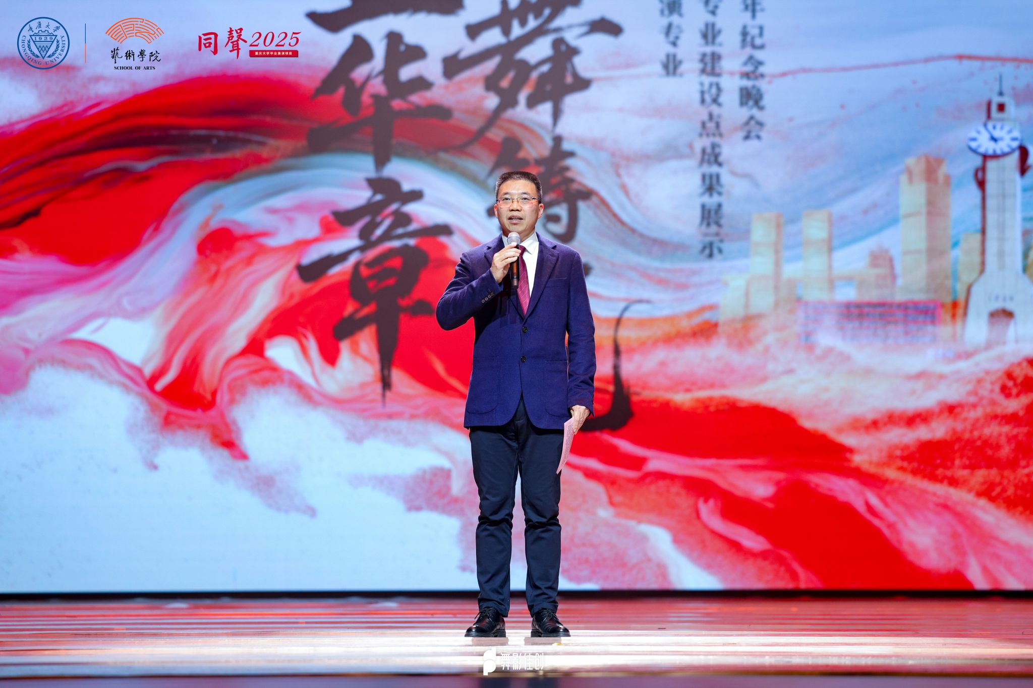 舞蹈表演专业国家级一流本科专业建设点成果展示暨舞蹈系建系25周年纪念晚会在重庆市劳动人民文化宫影剧院隆重举行。重庆市文学艺术界联合会党组书记、副主席阳奎兴,污污漫