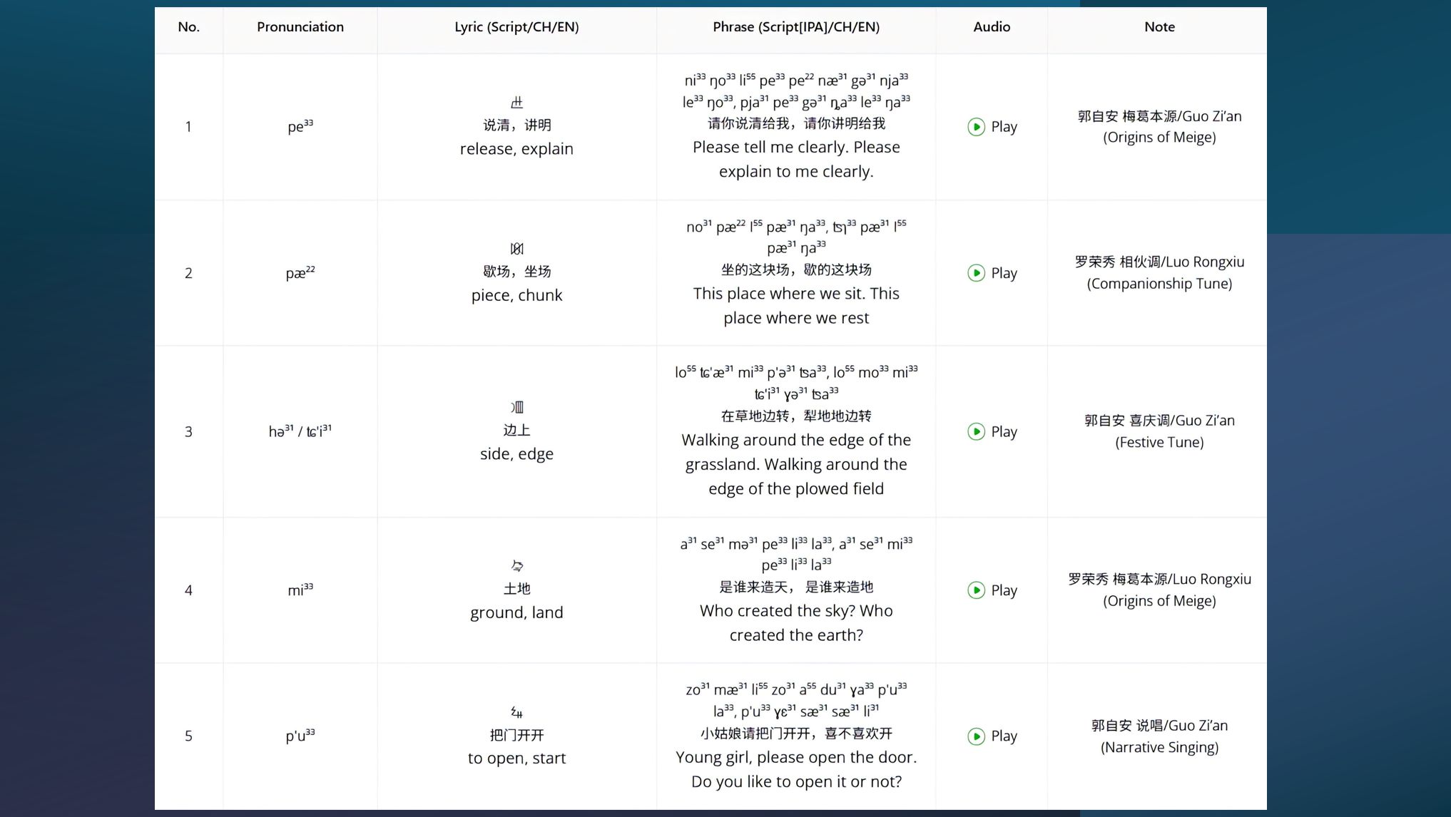 讲座中,钱莉娟博士结合具体案例,系统梳理了从田野录音采集到学术资源建构的全过程。围绕民族音乐资料的整理与利用,她详细介绍了录音材料的转写、释义、翻译、分类与标注等具体方法,并通过实例展示了如何将分散的田野资料转化为具有学术研究价值和资源共享功能的数字化成果。她还结合相关语料库建设实践,介绍了音乐资料在语音、歌词、语义及文化语境等层面的整合方式,展现了数字技术在民族音乐研究中的应用前景。