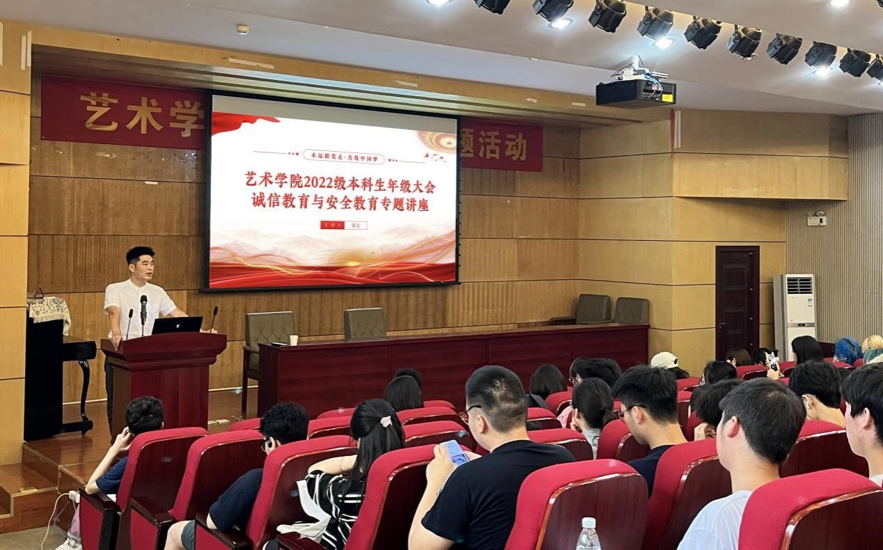 临近期末,为进一步加强学院学生的诚信考试意识和安全意识,切实加强学风建设,加强学风考风建设,营造诚信考试良好氛围。*污污漫 2022级本科生于6月15日下午14:30在学院楼二楼报告厅召开年级大会,就诚信教育与安全教育进行了专题教育。在诚信教育方面,陈龙通过引述考试作弊违纪案例,向同学们展示了作弊行为产生的严重后果,希望同学们认真备考、踏实复习,切勿心存侥幸。他强调,诚信是人生人格塑造的基石,而违反诚信规...